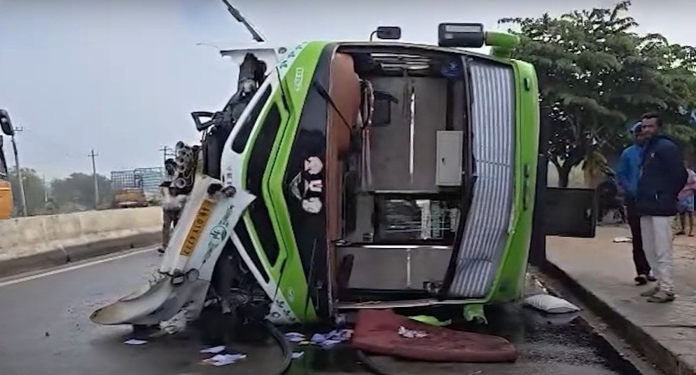 ಡಿವೈಡರ್‌ಗೆ ಡಿಕ್ಕಿ ಹೊಡೆದ ಖಾಸಗಿ ಬಸ್ ಪಲ್ಟಿಯಾದ ಪರಿಣಾಮ ಆಂಧ್ರದ ಪೊದಟೂರು ಗ್ರಾಮದ ನಿವಾಸಿ ಅನಿತಾ (58) ಸ್ಥಳದಲ್ಲೇ ಮೃತಪಟ್ಟಿದ್ದಾರೆ.
