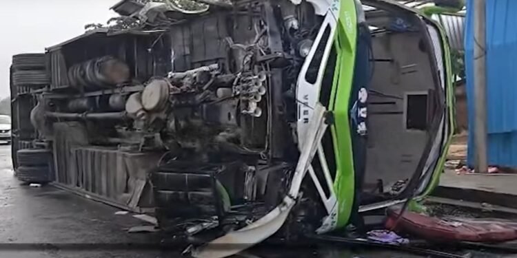 ಕೋಲಾರ: ಜಿಲ್ಲೆಯ ಶ್ರೀನಿವಾಸಪುರ ತಾಲೂಕಿನ ಮಂಚಿನೀಳ್ಳಕೋಟೆ ಗ್ರಾಮದ ಬಳಿ ಮುಂಜಾನೆ 3 ಗಂಟೆ ಸುಮಾರಿಗೆ ಭೀಕರ ಬಸ್‌ ಅಪಘಾತ ಸಂಭವಿಸಿದೆ.