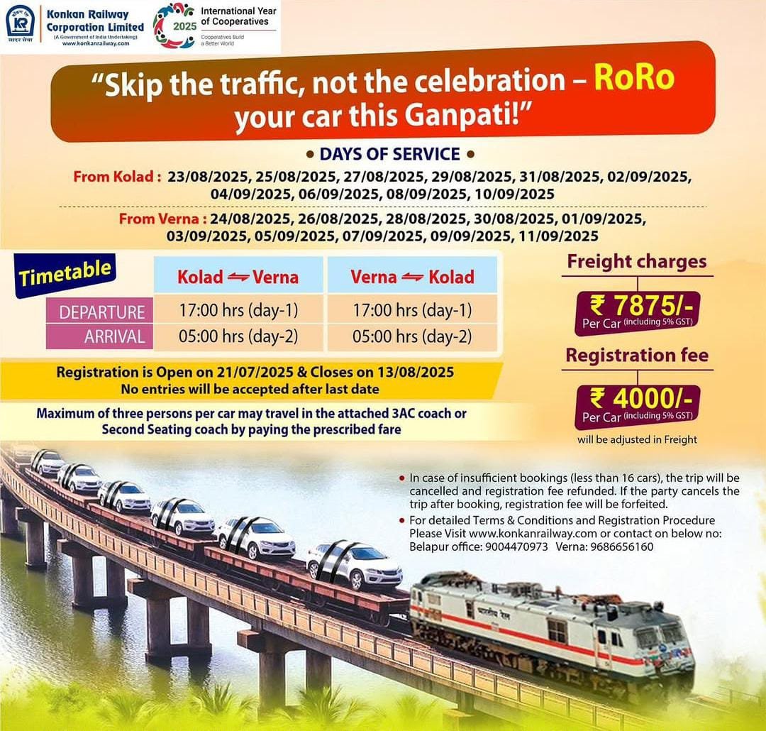 1999ರಿಂದಲೇ ಸರಕು ಸೇವೆಗಾಗಿ ರೋ-ರೋ ಸೇವೆಯನ್ನು ಯಶಸ್ವಿಯಾಗಿ ನಡೆಸಿಕೊಂಡು ಬಂದಿರುವ ಕೊಂಕಣ ರೈಲ್ವೆ, ಇದೀಗ ಇದೇ ಸೇವೆಯಲ್ಲಿ ಮುಂದುವರಿದು ವೈಯಕ್ತಿಕ ಕಾರುಗಳ ಸಾಗಣೆಗೂ ವಿಸ್ತರಿಸಿದೆ.