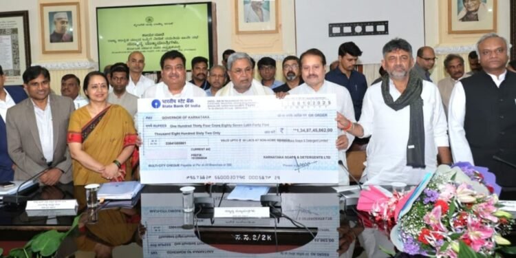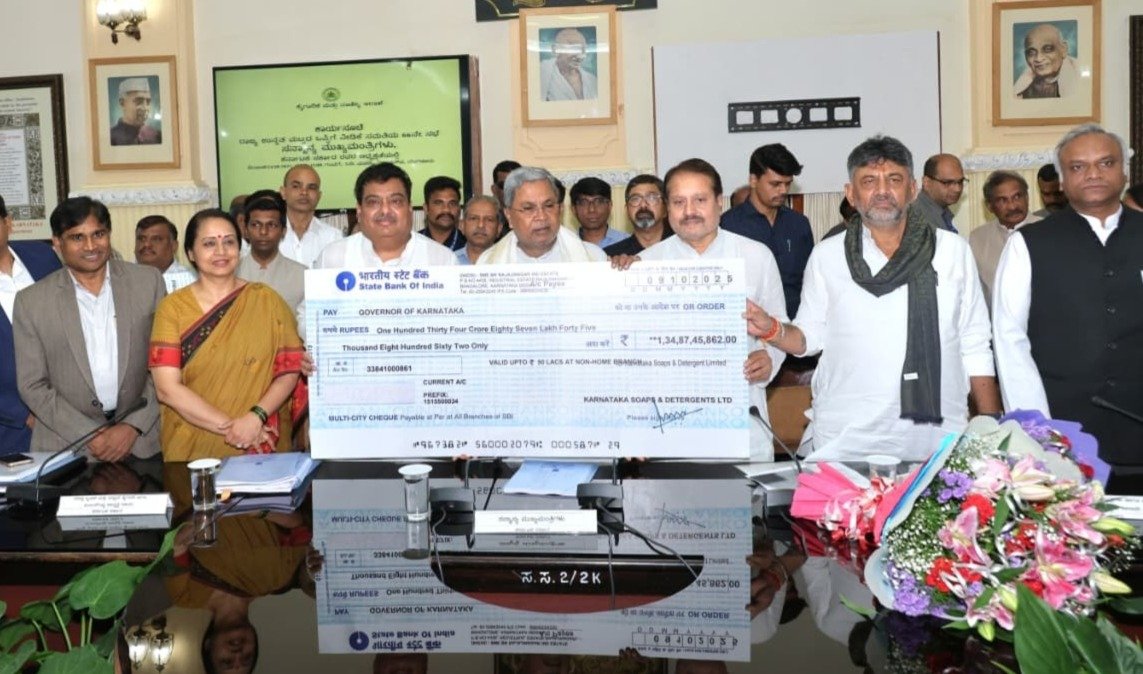 ಬೆಂಗಳೂರು : ಸಾರ್ವಜನಿಕ ವಲಯದ ಕರ್ನಾಟಕ ಸಾಬೂನು ಮತ್ತು ಮಾರ್ಜಕ ನಿಯಮಿತವು (KSDL) 2024-25ನೇ ಸಾಲಿನ ಲಾಭದಲ್ಲಿ 135 ಕೋಟಿ ರೂಪಾಯಿಗಳನ್ನು ಶುಕ್ರವಾರ ಸರ್ಕಾರಕ್ಕೆ ಹಸ್ತಾಂತರಿಸಿತು.