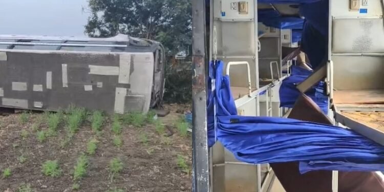 ರಾಯಚೂರು : ಚಾಲಕನ ನಿಯಂತ್ರಣ ತಪ್ಪಿ ಕೆಎಸ್ಆರ್ಟಿಸಿ ಸ್ಲೀಪರ್ ಬಸ್ ಪಲ್ಟಿಯಾಗಿರುವ ಘಟನೆ ಆಂಧ್ರಪ್ರದೇಶದ ಕರ್ನೂಲ್ ಜಿಲ್ಲೆಯ ತುಗ್ಗಿಲಿಮಂಡಲಂನ ರಾತನ ಗ್ರಾಮ ಬಳಿ ಹೊಡೆದಿದೆ.