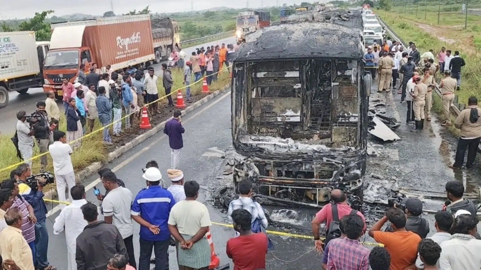 ಏನಿದು ಅವಘಡ? ಆಂಧ್ರದ ಕರ್ನೂಲ್ ಬಳಿಯ ಚಿನ್ನಟೇಕೂರು ಬಳಿ ಹೈದರಾಬಾದ್‌ನಿಂದ ಬೆಂಗಳೂರಿಗೆ ಬರುತ್ತಿದ್ದ ವೇಳೆ ಇಂದು ನಸುಕಿನ ಜಾವ ಅವಘಡ ಸಂಭವಸಿದೆ. ದುರಂತದಲ್ಲಿ 40 ಮಂದಿ ಪ್ರಯಾಣಿಕರಲ್ಲಿ 20 ಮಂದಿ ಜೀವಂತವಾಗಿ ಸುಟ್ಟು ಹೋಗಿದ್ದಾರೆ. ಗಾಯಳು ಪ್ರಯಾಣಿಕರನ್ನು ಕರ್ನೂಲ್ ಸರ್ಕಾರಿ ಜನರಲ್ ಆಸ್ಪತ್ರೆಗೆ ದಾಖಲಿಸಲಾಗಿದೆ. ಹೆಚ್ಚಿನ ಪ್ರಯಾಣಿಕರು ಹೈದರಾಬಾದ್ ನಿವಾಸಿಗಳು ಎಂದು ಪೊಲೀಸರು ತಿಳಿಸಿದ್ದಾರೆ