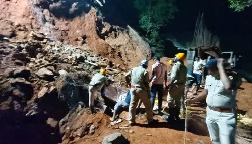 ಶಿವಮೊಗ್ಗ: ಹೊಸನಗರ ತಾಲ್ಲೂಕಿನ ಹುಲಿಕಲ್ ಘಾಟಿಯಲ್ಲಿ ರಸ್ತೆ ದುರಸ್ತಿ ಕಾಮಗಾರಿ ನಡೆಯುತ್ತಿದ್ದಾಗ ಭಾರಿ ಪ್ರಮಾಣದಲ್ಲಿ ಮಣ್ಣು ಕುಸಿದು ಮೂವರು ಕಾರ್ಮಿಕರು ಸ್ಥಳದಲ್ಲೇ ಮೃತಪಟ್ಟು, ನಾಲ್ವರು ಗಂಭೀರವಾಗಿ ಗಾಯಗೊಂಡಿರುವ ದುರ್ಘಟನೆ ಬುಧವಾರ ಸಂಭವಿಸಿದೆ.