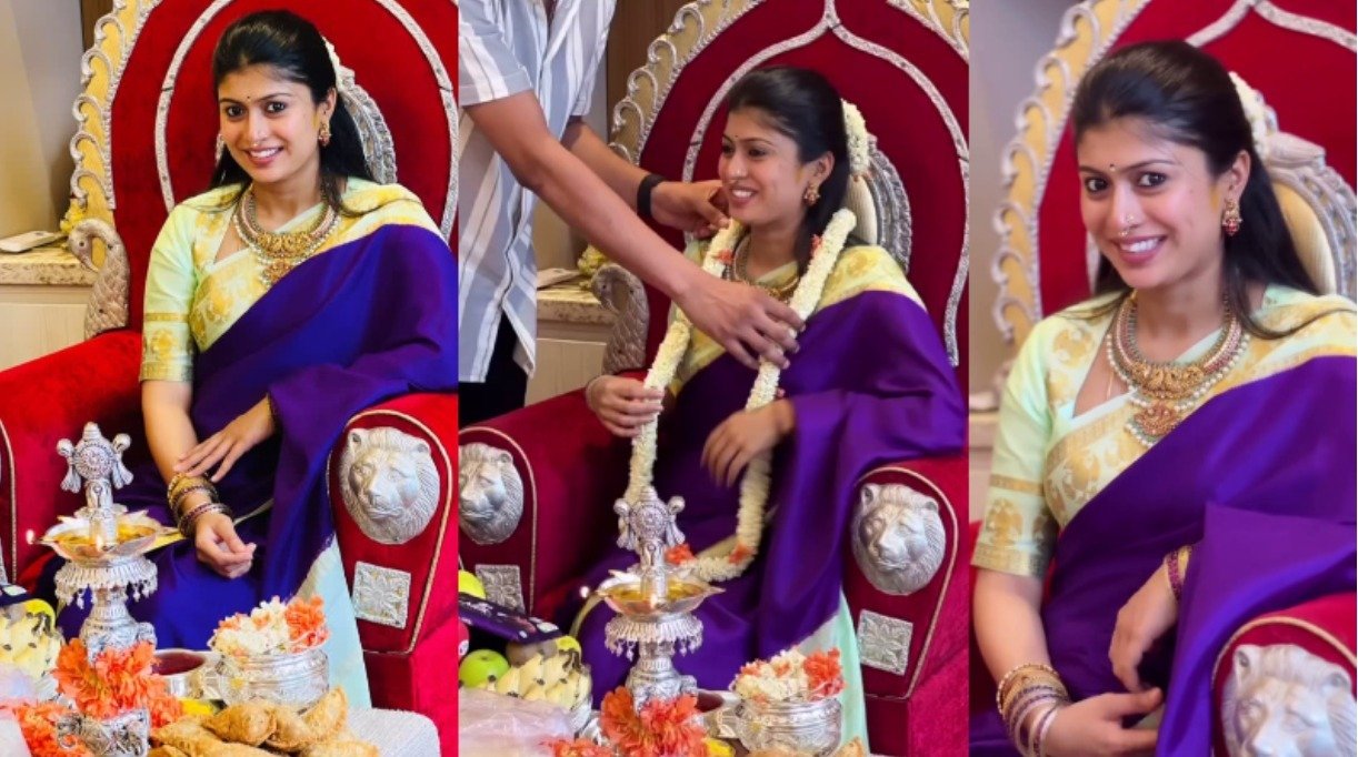 ಆ ಸಿನಿಮಾದಲ್ಲಿ ಡಾರ್ಲಿಕ್ ಕೃಷ್ಣ ಅವರಿಗೆ ಹುಡುಗಿ ತೋರಿಸುವ ಅಂದ್ರೆ ಮ್ಯಾಚ್ ಬ್ರೋಕರ್ ಜಂಕಿ ಪಾತ್ರದಲ್ಲಿ ಮಿಂಚಿದ್ದ ನಟಿ ಸುಶ್ಮಿತಾ ಗೌಡ ಅವರು ಸಾಮಾಜಿಕ ಜಾಲತಾಣದಲ್ಲಿ ಫುಲ್ ಆಕ್ಟಿವ್ ಆಗಿದ್ದಾರೆ. ಆಗಾಗ ಚಂದದ ವಿಡಿಯೋಗಳನ್ನು ಪೋಸ್ಟ್ ಮಾಡುತ್ತಾ ನೆಟ್ಟಿಗರ ಗಮನ ಸೆಳೆದಿದ್ದಾರೆ. ಇದೀಗ ಸುಶ್ಮಿತಾ ಗೌಡ ಅವರು ಮೊದಲ ಮಗುವಿನ ನಿರೀಕ್ಷೆಯಲ್ಲಿದ್ದು ಸೀಮಂತ ಶಾಸ್ತ್ರ ಬಹಳ ಸಿಂಪಲ್ ಆಗಿ ನೆರೆವೇರಿದೆ..2022ರಲ್ಲಿ ಅಶ್ವಿನ್ ಮತ್ತು ಸುಶ್ಮಿತಾ ಅದ್ಧೂರಿಯಾಗಿ ದಾಂಪತ್ಯ ಜೀವನಕ್ಕೆ ಕಾಲಿಟ್ಟಿದ್ದರು.