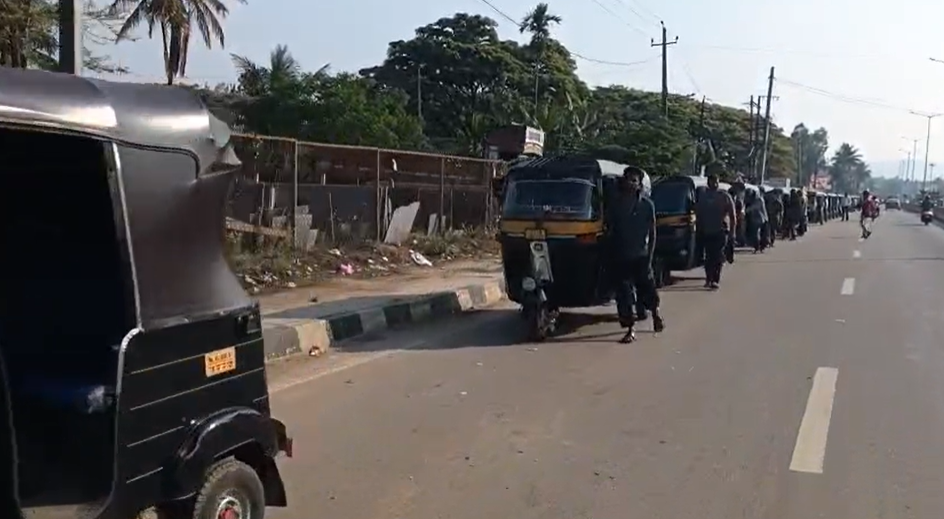 ಚಿಕ್ಕಮಗಳೂರು: 5 ದಿನಗಳ ನಂತರ ಚಿಕ್ಕಮಗಳೂರಿನ ಪಾರ್ವತಿಪುರ ಇಂಡಿಯನ್ ಬ್ಯಾಂಕ್ ಬಂಕ್ಗೆ LPG ಆಟೋ ಗ್ಯಾಸ್ ಬಂದಿದ್ದರಿಂದ ಆಟೋ ರಿಕ್ಷಾ ಸಾಲು ಸಾಲಾಗಿ ಸುಮಾರು 2 ಕಿಲೋ ಮೀಟರ್ಗಳಷ್ಟು ದೂರ ನಿಂತಿದೆ.