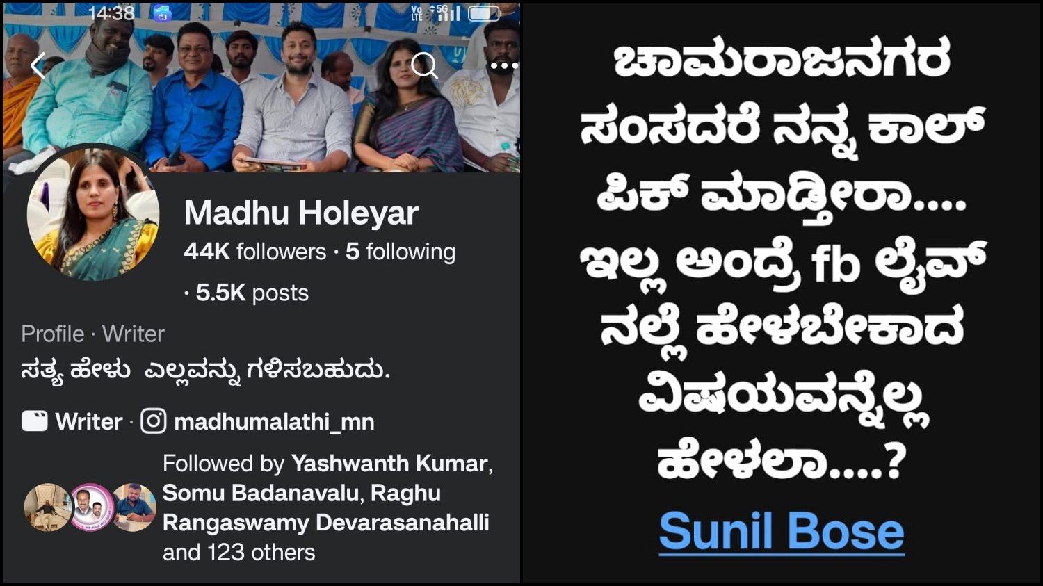 ಫೇಸ್ ಬುಕ್ ಖಾತೆಯಲ್ಲಿ ರಾಜಕಾರಿಣಿಗಳು ಹಾಗೂ ಅಧಿಕಾರಿಗಳ ಬಗ್ಗೆ ಸಾಕಷ್ಟು ವಿಮರ್ಶೆಗಳನ್ನ ಮಾಡಿರುವ ಈಕೆ, ಸಂಸದ ಸುನಿಲ್ ಬೋಸ್‌ಗೆ ಈ ರೀತಿ ವಾರ್ನಿಂಗ್ ಕೊಡುವ ಮರ್ಮ ಏನು ಗೊತ್ತಿಲ್ಲ. ಒಟ್ಟಾರೆ ಸಂಸದರ ಆಪ್ತ ವಲಯದಲ್ಲಿ ಹಾಗೂ ಸಾರ್ವಜನಿಕ ವಲಯದಲ್ಲಿ ಈ ವಿಚಾರ ಭಾರೀ ಚರ್ಚಗೆ ಗ್ರಾಸವಾಗಿದೆ.