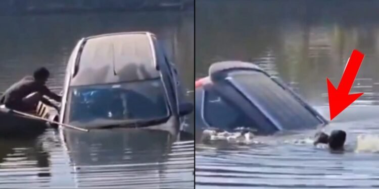 ವಾಹನವು ನೀರಿಗೆ ಬಿದ್ದು ಮುಳುಗಲು ಪ್ರಾರಂಭಿಸುತ್ತಿದ್ದಂತೆ ಹತ್ತಿರದಲ್ಲಿದ್ದ ಸ್ಥಳೀಯ ನಿವಾಸಿ ಫೈಜಲ್, ಕೂಡಲೇ ಕಾರ್ಯಪ್ರವೃತ್ತರಾಗಿ ಒಂದು ಕ್ಷಣವೂ ವ್ಯರ್ಥ ಮಾಡದೆ, ಮುಳುಗುತ್ತಿದ್ದ ಎಸ್ಯುವಿ ಕಡೆಗೆ ತನ್ನ ದೋಣಿಯನ್ನು ಚಲಾಯಿಸಿ ಕೊಳಕ್ಕೆ ಹಾರಿದ್ದಾರೆ.