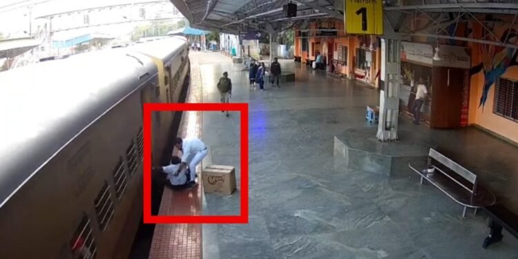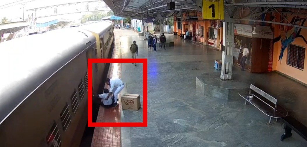 ರೈಲು ಹತ್ತಲು ಹೋಗಿ ಆಯತಪ್ಪಿದ ಪ್ಯಾಸೆಂಜರ್‌ | ಸ್ಟೇಷನ್ ಮಾಸ್ಟರ್ ಸಮಯಪ್ರಜ್ಞೆಗೆ ಸಲಾಂ