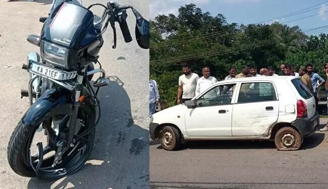 ಮಂಗಳೂರು : ರಾಂಗ್ ಸೈಡ್ ನಿಂದ ಬಂದ ಕಾರು ಬೈಕ್ಗೆ ಡಿಕ್ಕಿ ಹೊಡೆದಿದೆ. ಪರಿಣಾಮ ಬೈಕ್ನಲ್ಲಿದ್ದ ಇಬ್ಬರು ಸವಾರರು ಗಂಭೀರ ಗಾಯಗೊಂಡಿದ್ದಾರೆ.ಈ ಘಟನೆ ಬಿ.ಸಿ.ರೋಡ್ ಸಮೀಪದ ತಲಪಾಡಿ ಎಂಬಲ್ಲಿ ನಡೆದಿದೆ.