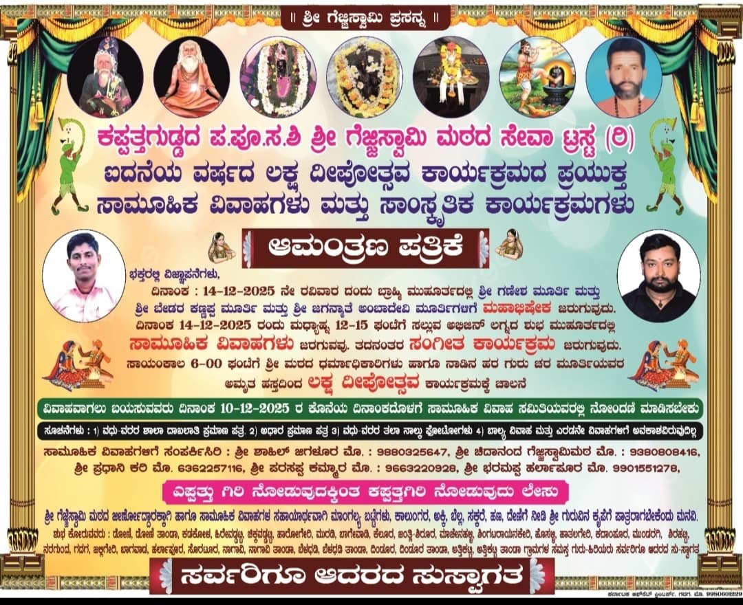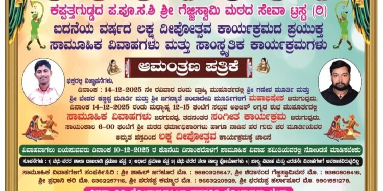Tags: GadagGejjiswamy MuttKarnataka News beatLaksha DeepotsavamMass wedding program