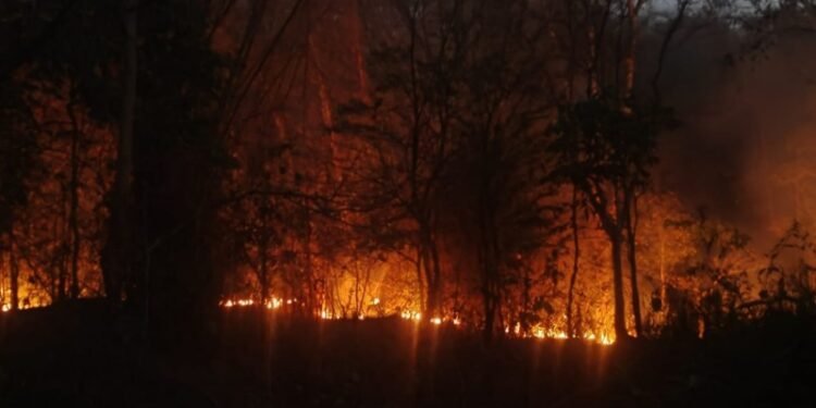 ಚಿಕ್ಕಮಗಳೂರು: ತಾಲೂಕಿನ ಮುತ್ತೋಡಿ ಅರಣ್ಯ ವಲಯದಲ್ಲಿ ಕಳೆದ 2 ದಿನಗಳಿಂದ ಭಾರೀ ಪ್ರಮಾಣದಲ್ಲಿ ಕಾಡ್ಗಿಚ್ಚು ಕಾಣಿಸಿಕೊಂಡಿದೆ. ಪರಿಣಾಮ ಅಪರೂಪದ ಅರಣ್ಯ ಸಂಪತ್ತು, ಜೀವ ಸಂಕುಲಕ್ಕೆ ಸಂಚಕಾರ ಎದುರಾಗಿದೆ.