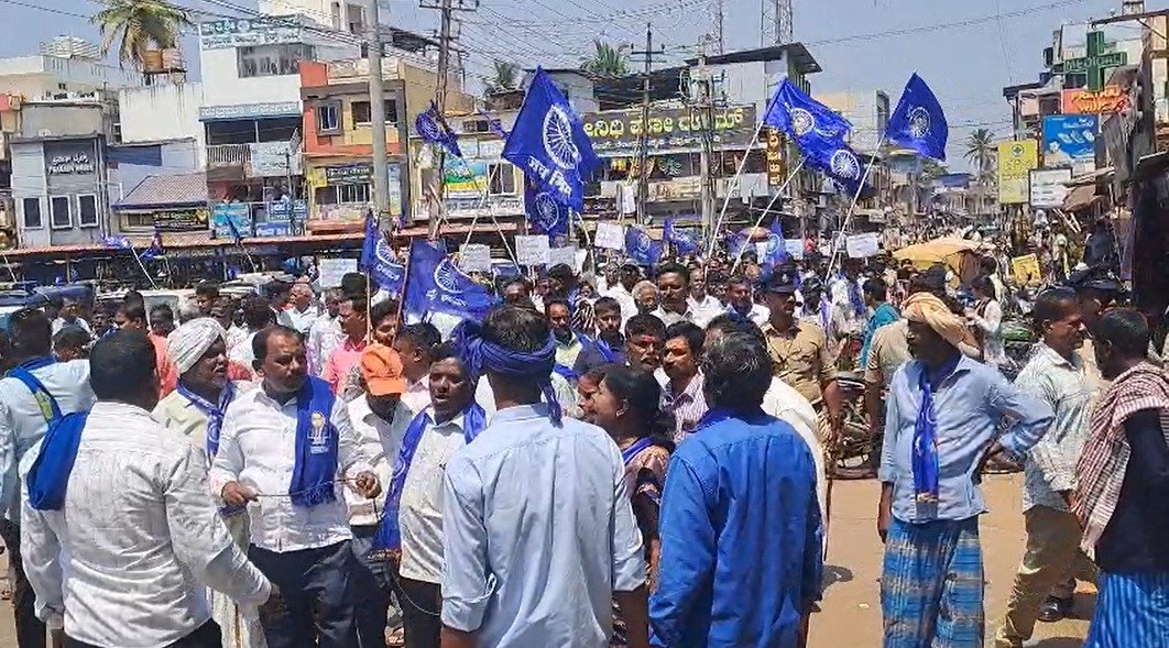 ಶಿವಮೊಗ್ಗ : ಒಳಮೀಸಲಾತಿ ಜಾರಿಗೆ ಆಗ್ರಹಿಸಿ ಶಿವಮೊಗ್ಗ ಜಿಲ್ಲೆಯ ಶಿಕಾರಿಪುರ ಪಟ್ಟಣದಲ್ಲಿ ಮಾದಿಗ ಸಮಾಜದ ವತಿಯಿಂದ ಬೃಹತ್ ಪ್ರತಿಭಟನೆ ನಡೆಸಿ, ಎಸ್ ಸಿ ಪಟ್ಟಿಯಲ್ಲಿರುವ ಅರ್ಹ ಸಮುದಾಯಗಳಿಗೆ ಸಾಮಾಜಿಕ ನ್ಯಾಯ ಒದಗಿಸಲು ಒಳ ಮೀಸಲು ಜಾರಿಗೊಳಿಸುವಂತೆ ಆಗ್ರಹಿಸಲಾಗಿದೆ.