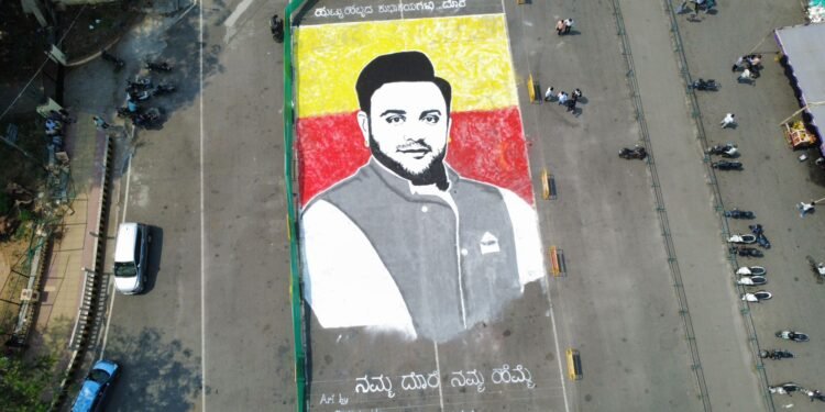 ಮೈಸೂರು: ಸಂಸದ ಯದುವೀರ್ ಒಡೆಯರ್ ಅವರ ಹುಟ್ಟುಹಬ್ಬದ ಅಂಗವಾಗಿ ಮೈಸೂರಿನಲ್ಲಿ ಅಭಿಮಾನಿಯು ರಂಗೋಲಿಯಲ್ಲಿ ಬೃಹತ್ ಭಾವಚಿತ್ರ ಬಿಡಿಸಿ ಶುಭಾಶಯ ಕೋರಿದ್ದಾರೆ.
