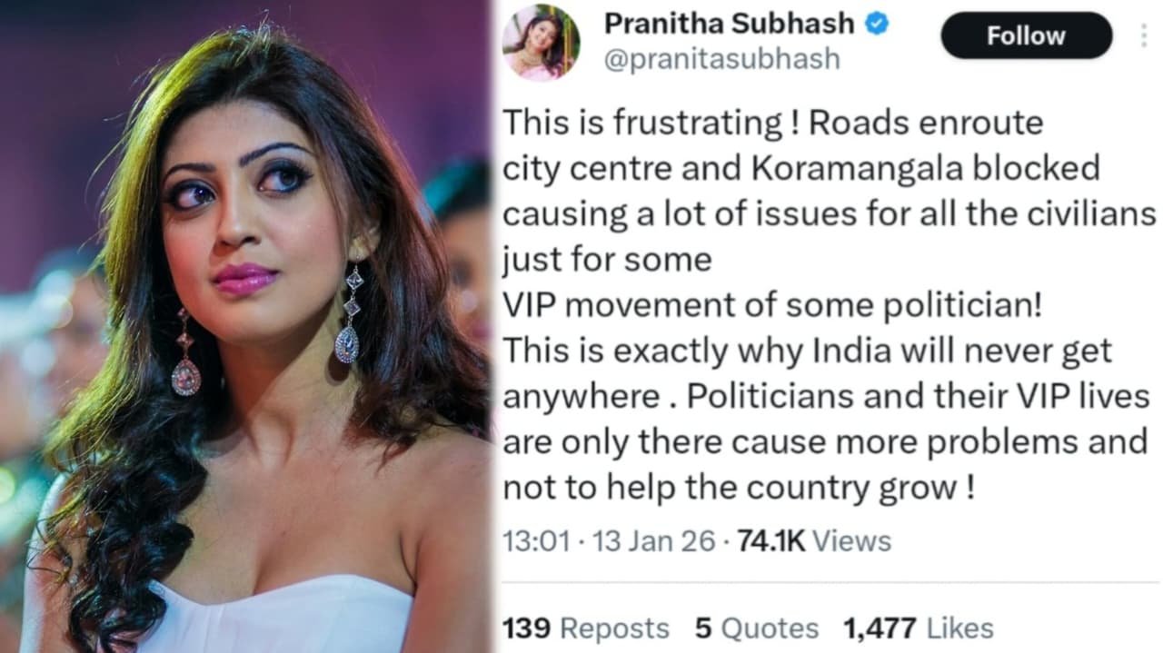 ಕೋರಮಂಗಲ ಭಾಗದಲ್ಲಿ ಇಂದು ಜರ್ಮನಿ ಚಾನ್ಸಿಲರ್ ಭೇಟಿ ಹಿನ್ನೆಲೆ, ರಸ್ತೆ ಮಾರ್ಗಗಳ ಬಂದ್ ಮಾಡಲಾಗಿತ್ತು. ಮಾರ್ಗ ಬಂದ್ ಮಾಡಿದ್ದಕ್ಕಾಗಿ ಇತರೆ ವಾಹನ ಸವಾರರಿಗೆ ಟ್ರಾಫಿಕ್ ಬಿಸಿ ತಟ್ಟಿತ್ತು. ಈ ಬಗ್ಗೆ ಎಕ್ಸ್ ನಲ್ಲಿ ಪೋಸ್ಟ್ ಹಾಕಿ ನಟಿ ಪ್ರಣೀತಾ, ಇದು ತುಂಬಾ ಬೇಸರದ ಸಂಗತಿ. ಕೋರಮಂಗಲಕ್ಕೆ ಹೋಗುವ ರಸ್ತೆಗಳು ಮುಚ್ಚಿ ಹೋಗಿರುವುದರಿಂದ ನಾಗರಿಕರಿಗೆ ಬಹಳಷ್ಟು ಸಮಸ್ಯೆ ಉಂಟಾಗಿದೆ. ಇದು ಕೇವಲ ಕೆಲವು ರಾಜಕಾರಣಿಗಳ, ವಿಐಪಿ ಸಂಚಾರದ ಕಾರಣಕ್ಕಾಗಿ ಇಂತಹ ನಡೆ ಒಳ್ಳೆಯದಲ್ಲ ಎಂದು ತಮ್ಮ ಎಕ್ಸ್ ಖಾತೆಯಲ್ಲಿ ಬರೆದುಕೊಂಡಿದ್ದಾರೆ.