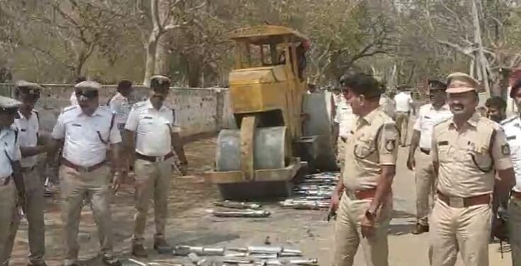 ಮೈಸೂರು | ರೋಡ್ ರೋಲರ್ ಹತ್ತಿಸಿ ದೋಷಪೂರಿತ 378 ಸೈಲೆನ್ಸರ್‌ ನಾಶ
