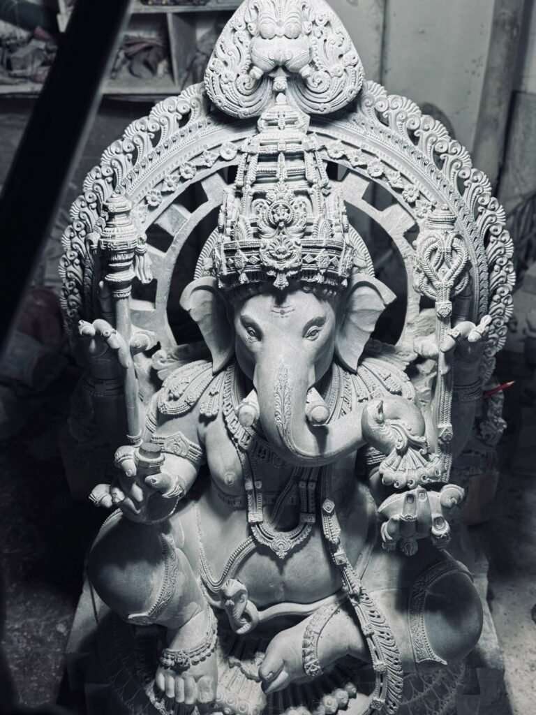 ಹೌದು.. ಖ್ಯಾತ ಶಿಲ್ಪಿ ಅರುಣ್ ಯೋಗಿರಾಜ್ ಅವರಿಂದ ಕೆತ್ತನೆಯಾಗಿರುವಂತಹ ನಾಲ್ಕು ಅಡಿ, ಮೂರಡಿ ಪೀಠ ಉಳ್ಳ ಗಣಪನ ವಿಗ್ರಹ ಹೊಯ್ಸಳ ಹಾಗೂ ಮೈಸೂರು ಶೈಲಿಯಲ್ಲಿ ಸಿದ್ದಪಡಿಸಲಾಗಿದೆ. ಕಳೆದ ಆರು ತಿಂಗಳಿಂದ ನಿರಂತರ ಗಣಪನ ವಿಗ್ರಹದ ಕೆತ್ತನೆ ಕಾರ್ಯ ನಡೆದಿದೆ. ಕೆತ್ತನೆಗೊಂಡಿರುವ ಈ ಗಣಪ ಇಂದೇ ಮುಂಬೈಗೆ ತೆರಳಲಿದ್ದು, ಅಲ್ಲಿ ಆಲಿಯಾ ಭಟ್ ಅವರ ಮನೆಯಲ್ಲಿ ವಿರಾಜಮಾನವಾಗಲಿದೆ.