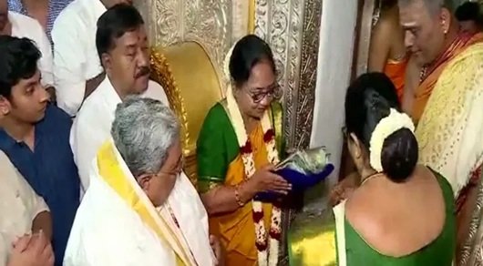 ಇದಕ್ಕೂ ಮುನ್ನ ಸಿಎಂ ಸಿದ್ದರಾಮಯ್ಯ ಚಾಮುಂಡಿ ಬೆಟ್ಟದಲ್ಲಿ ಈಡುಗಾಯಿ ಒಡೆದರು. ಅರ್ಚಕರು ಪೂಜೆ ಸಲ್ಲಿಸಿ ಸಿಎಂ ಸಿದ್ದರಾಮಯ್ಯ ಹಾಗೂ ಬಾನು ಮುಷ್ತಾಕ್ ಅವರಿಗೆ ಹೂವಿನ ಹಾರ ನೀಡಿ ಸನ್ಮಾನಿಸಿದರು. ಈ ಸಂದರ್ಭದಲ್ಲಿ ಮೈಸೂರಿನ ಶಾಸಕರು, ಜಿಲ್ಲಾಧಿಕಾರಿಗಳು, ಅಧಿಕಾರಿಗಳು ಹಾಜರಿದ್ದರು. ಬಾನು ಮುಷ್ತಾಕ್ ಅವರು ನಾಡದೇವಿಯ ದರ್ಶನ ಪಡೆದು, ಪೂಜೆ ಸಲ್ಲಿಸಿ ಭಕ್ತಿಯಿಂದ ಭಾಗಿಯಾಗಿ ಮಹಾಮಂಗಳಾರತಿ ಸ್ವೀಕರಿಸಿದ್ದಾರೆ.