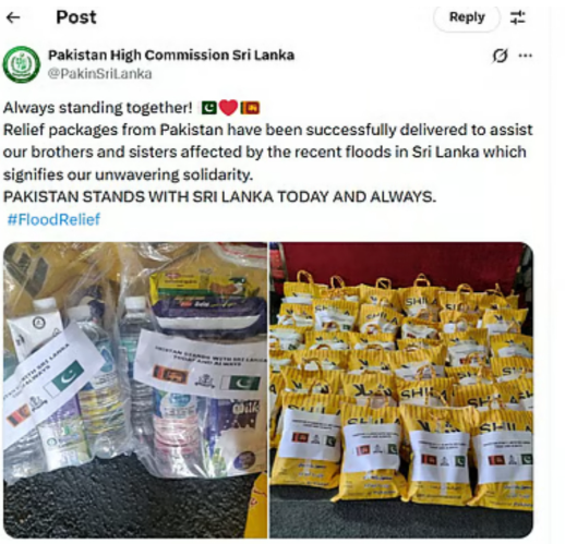 ಶ್ರೀಲಂಕಾ ದಶಕಗಳಲ್ಲೇ ಅತ್ಯಂತ ಭೀಕರವಾದ ನೈಸರ್ಗಿಕ ವಿಕೋಪದಿಂದ ತತ್ತರಿಸಿದೆ. ನೂರಾರು ಮಂದಿ ಮೃತಪಟ್ಟಿದ್ದಾರೆ. ಸಾವಿರಾರು ಜನರನ್ನು ಬೇರೆಡೆಗೆ ಸ್ಥಳಾಂತರಿಸಲಾಗಿದೆ. ಜನರ ಮೂಲಸೌಕರ್ಯಗಳು ಹಾನಿಗೊಳಗಾಗಿವೆ. ಸುರಕ್ಷಿತ ಆಹಾರ ಮತ್ತು ವೈದ್ಯಕೀಯ ಸರಬರಾಜುಗಳ ತುರ್ತು ಕೊರತೆಯಿದೆ. ಅವಧಿ ಮುಗಿದ ಸಾಮಗ್ರಿಗಳ ಸಹಾಯವನ್ನು ಕಳುಹಿಸುವ ಮೂಲಕ ಪಾಕಿಸ್ತಾನ ಟೀಕೆಗೆ ಗುರಿಯಾಗಿದೆ. ವಿಪತ್ತು ನಿರ್ವಹಣಾ ಕೇಂದ್ರ ಮತ್ತು ವಿದೇಶಾಂಗ ಸಚಿವಾಲಯ ಎರಡನ್ನೂ ನೆಟ್ಟಿಗರು ತರಾಟೆಗೆ ತೆಗೆದುಕೊಂಡಿದ್ದಾರೆ.