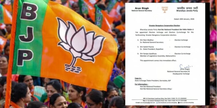 ಜಿಬಿಎ ಚುನಾವಣಾ ಉಸ್ತುವಾರಿಯನ್ನಾಗಿ ರಾಮ್ ಮಾಧವ್ ಅವರನ್ನು ನೇಮಕ ಮಾಡಲಾಗಿದ್ದು, ಸಹ ಉಸ್ತವಾರಿಗಳಾಗಿ ಸತೀಶ್ ಪೂನಿಯಾ, ಸಂಜಯ್ ಉಪಧ್ಯಾಯ್ ಅವರನ್ನು ನೇಮಕ ಮಾಡಿ ಬಿಜೆಪಿ ರಾಷ್ಟ್ರೀಯ ಅಧ್ಯಕ್ಷರಾಗಿ ನಿತಿನ್ ನಬಿನ್ ಆದೇಶ ಹೊರಡಿಸಿದ್ದಾರೆ.