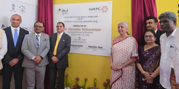 ಉಡುಪಿ : ಭಾರತೀಯ ರತ್ನಗಳ ಮತ್ತು ಆಭರಣ ಸಂಸ್ಥೆಯ (ಐಐಜಿಜೆ) ನೂತನ ಕಚೇರಿ ಉದ್ಘಾಟನೆಯನ್ನು ಇಂದು (ಏ.28) ಕೇಂದ್ರ ವಿತ್ತ ಸಚಿವೆ ನಿರ್ಮಲಾ ಸೀತಾರಾಮನ್ ನೆರವೇರಿಸಿದ್ದಾರೆ.