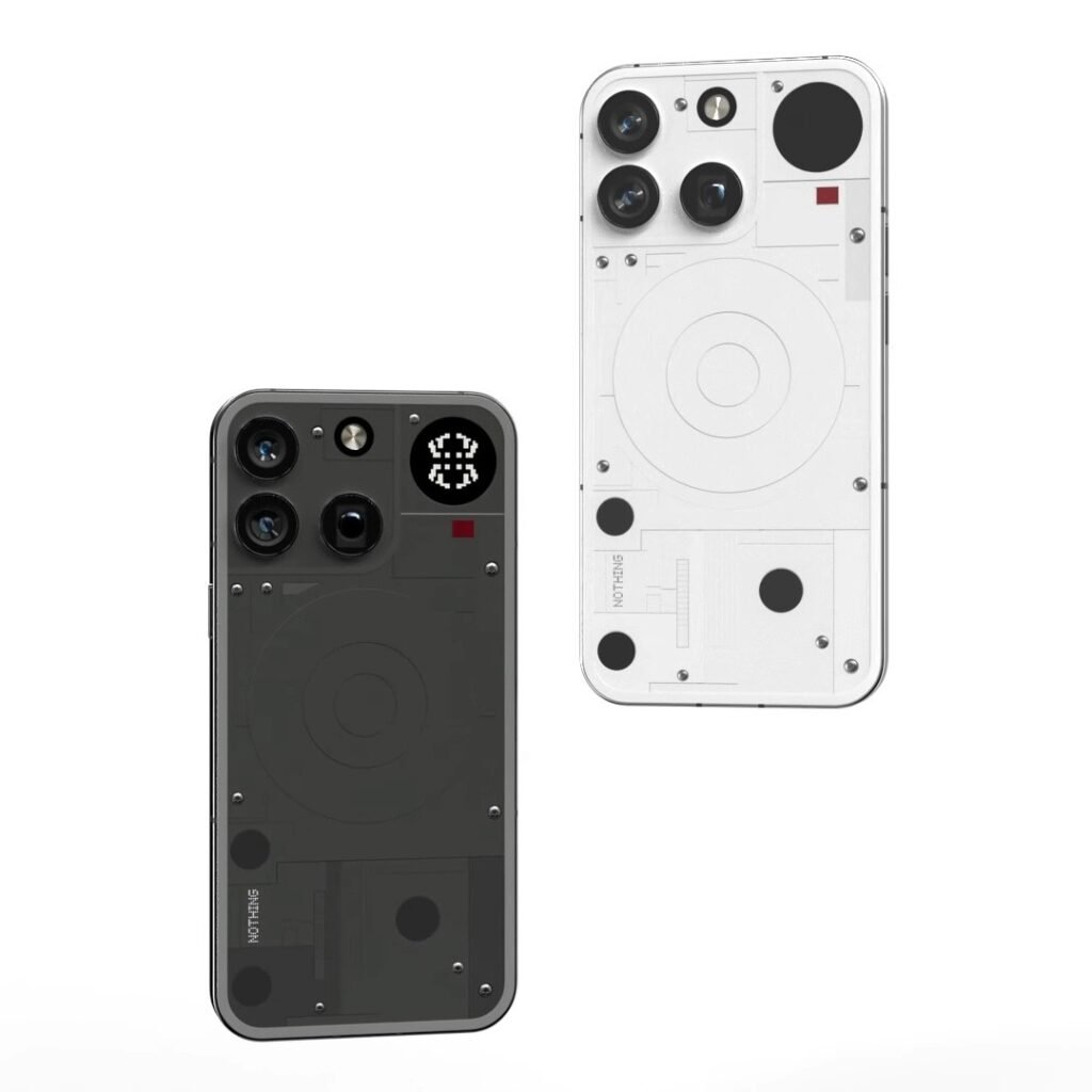 ವಿನ್ಯಾಸದ ವಿಚಾರದಲ್ಲಿ, ನಥಿಂಗ್ ತನ್ನ ಸಿಗ್ನೇಚರ್ ಗ್ಲಿಫ್ ಲೈಟಿಂಗ್ (Glyph Lighting) ವ್ಯವಸ್ಥೆಯನ್ನು ನವೀಕರಿಸಿದ್ದು, ಹೊಸ “ಗ್ಲಿಫ್ ಮ್ಯಾಟ್ರಿಕ್ಸ್” (Glyph Matrix) ವಿನ್ಯಾಸವನ್ನು ಪರಿಚಯಿಸಲಿದೆ. ಇದು ಸಾಂಪ್ರದಾಯಿಕ ಗ್ಲಿಫ್ ಲೈಟಿಂಗ್‌ಗೆ ಹೊಸ ಆಯಾಮ ನೀಡುವ ಸಾಧ್ಯತೆ ಇದೆ. ಸೋರಿಕೆಯಾದ ಚಿತ್ರಗಳ ಪ್ರಕಾರ, ಫೋನ್ ಕಪ್ಪು ಮತ್ತು ಬಿಳಿ ಬಣ್ಣಗಳಲ್ಲಿ ಲಭ್ಯವಿರಲಿದೆ. ಫೋನ್ ಪಂಚ್-ಹೋಲ್ ಡಿಸ್‌ಪ್ಲೇಯನ್ನು ಹೊಂದಿದ್ದು, ಕ್ಯಾಮರಾ ವಿನ್ಯಾಸದಲ್ಲಿ ಒಂದು ವಿಶಿಷ್ಟ ಬದಲಾವಣೆ ಕಂಡುಬಂದಿದೆ – ಮೇಲಿನ ಸೆನ್ಸಾರ್ ಇತರ ಎರಡು ಕ್ಯಾಮರಾಗಳಿಂದ ಪ್ರತ್ಯೇಕವಾಗಿರಿಸಲಾಗಿದೆ.