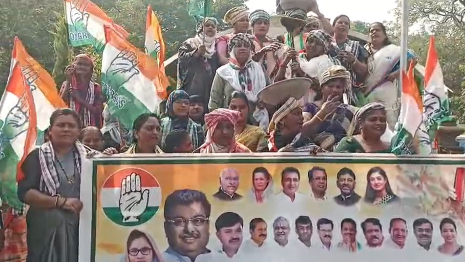 ವಿಜಯಪುರ : ಕೇಂದ್ರ ಸರ್ಕಾರ ನರೇಗಾ ಹೆಸರು ಬದಲಾವಣೆ ಮಾಡಿದನ್ನ ವಿರೋಧಿಸಿ ವಿಜಯಪುರದಲ್ಲಿ ಜಿಲ್ಲಾ ಮಹಿಳಾ ಕಾಂಗ್ರೆಸ್ ವಿನೂತನವಾಗಿ ಹೋರಾಟ ನಡೆಸಿದೆ.