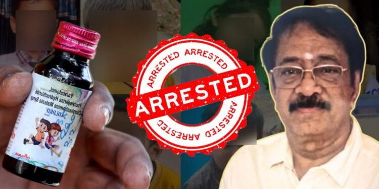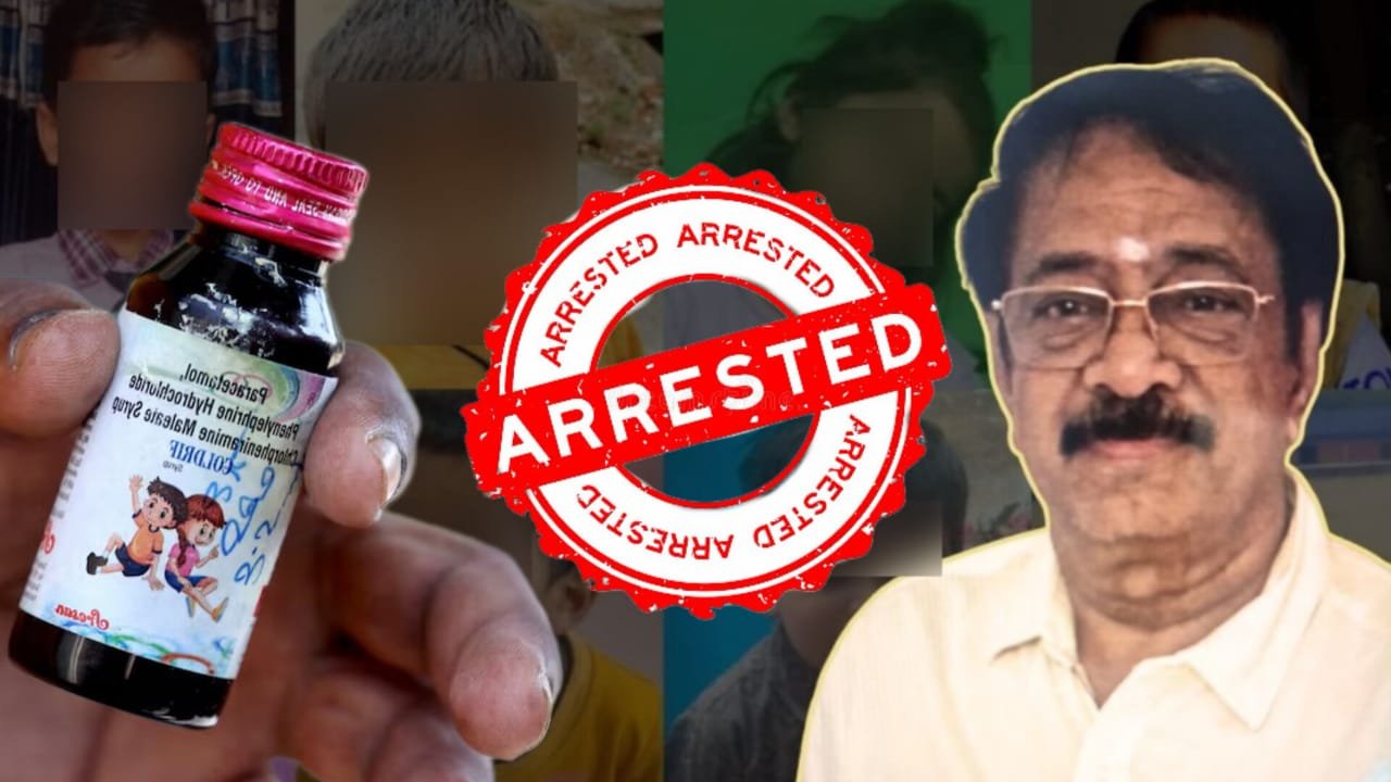 ಚೆನ್ನೈ : ಕೆಮ್ಮಿನ ಸಿರಪ್ ಸೇವಿಸಿ 20ಕ್ಕೂ ಹೆಚ್ಚು ಮಕ್ಕಳ ಸಾವಿಗೆ ಕಾರಣವಾದ ಫಾರ್ಮಾಸ್ಯುಟಿಕಲ್ಸ್ ಕಂಪನಿಯ ಮಾಲೀಕನನ್ನು ಪೊಲೀಸರು ಬಂಧಿಸಿದ್ದಾರೆ. ಕೋಲ್ಡ್ರಿಫ್ ಕೆಮ್ಮಿನ ಸಿರಪ್ ತಯಾರಿಸುತ್ತಿದ್ದ ಸ್ರೆಸನ್ ಫಾರ್ಮಾಸ್ಯುಟಿಕಲ್ಸ್ ಕಂಪನಿಯ ಮಾಲೀಕ ಎಸ್. ರಂಗನಾಥನ್ ಬಂಧಿತ ಆರೋಪಿ.