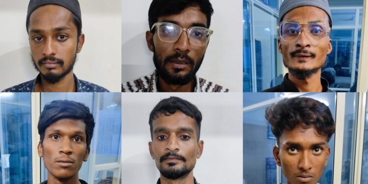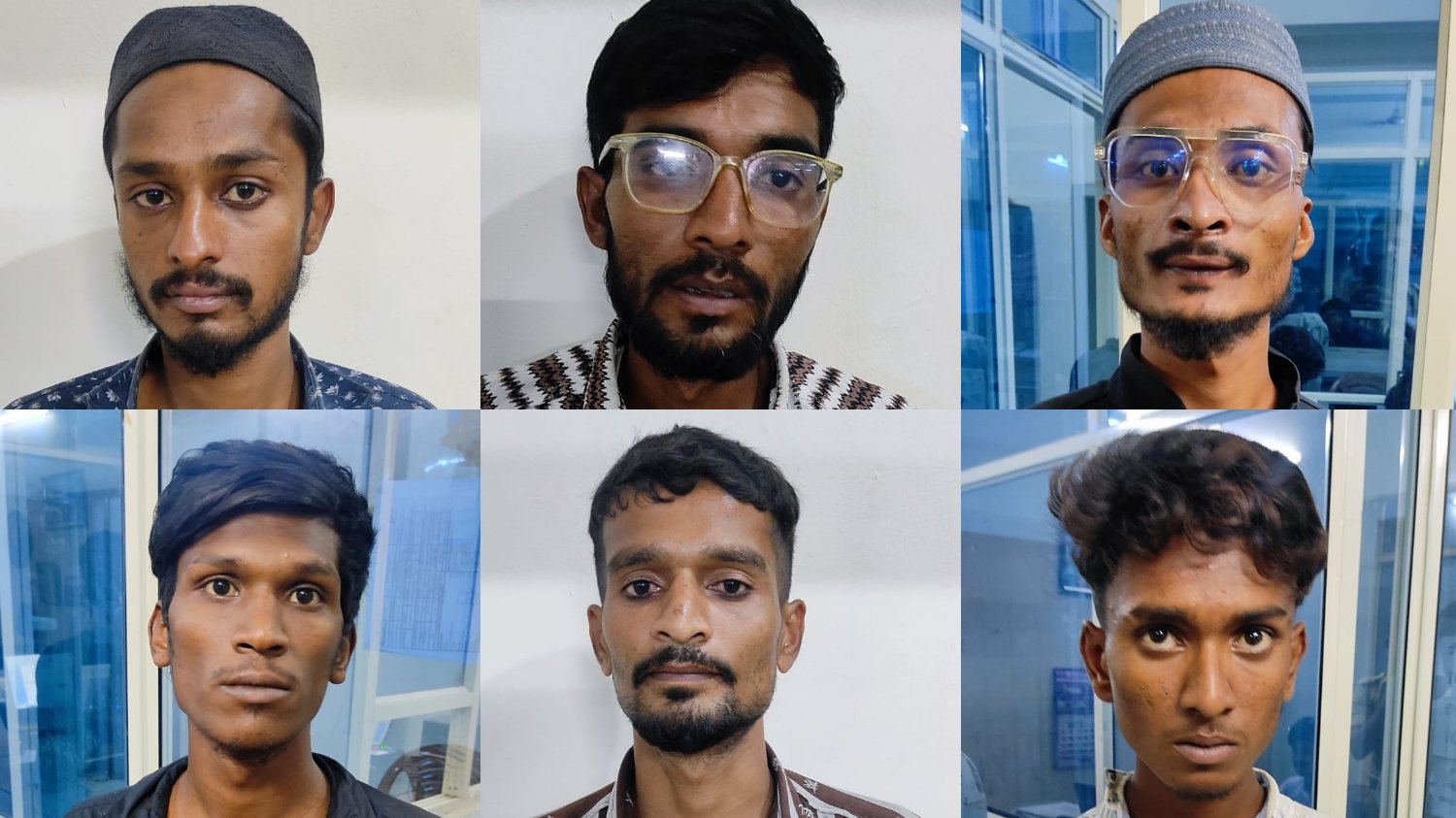 ಬಂಧಿತರು ಬೆಂಗಳೂರಿನ ಉಮರ್ (32), ನಜೀರ್ (35), ನವೀದ್ (32) ಹಾಗೂ ತುಮಕೂರಿನ ಮರಳೂರುದಿಣ್ಣೆ ನಿವಾಸಿಗಳಾದ ಶಾಹಬಾಜ್ (30), ಮಹಮ್ಮದ್ ಗೌಸ್ (32), ಮಹಮ್ಮದ್ ಇಕ್ಬಾಲ್ (28) ಎಂದು ಗುರುತಿಸಲಾಗಿದೆ.