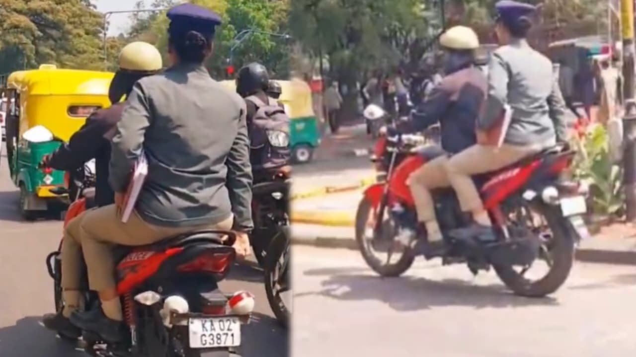 KA 02 G3871 ನೋಂದಣಿ ಸಂಖ್ಯೆಯ ಬೈಕ್ನಲ್ಲಿ ಮಹಿಳಾ ಹಾಗೂ ಪುರುಷ ಪೊಲೀಸ್ ಸಿಬ್ಬಂದಿ ಗೋಗಿತ್ತಿದ್ದು, ಅದರಲ್ಲಿ ಹಿಂದೆ ಕುಳಿತಿದ್ಧ ಮಾಹಿಳಾ ಪೊಲೀಸ್ ಸಿಬ್ಬಂದಿ ಹೆಲ್ಮೇಟ್ ಧರಿಸದೇ ಪ್ರಯಾಣಿಸುತ್ತಿರುವುದು ಕಂಡುಬಂದಿದೆ. ಈ ಘಟನೆ ಹಲಸೂರು ಗೇಟ್ ಸಂಚಾರಿ ಪೊಲೀಸ್ ಠಾಣಾ ವ್ಯಾಪ್ತಿಯಲ್ಲಿ ನಡೆದಿದೆ.