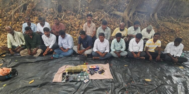 ಚಿಕ್ಕಬಳ್ಳಾಪುರ : ಜೂಜು ಅಡ್ಡೆ ಮೇಲೆ ಪೊಲೀಸರು ದಾಳಿ ನಡೆಸಿ 9 ಲಕ್ಷ ನಗದು ವಶಕ್ಕೆ ಪಡೆದು, 19 ಜನರನ್ನು ಬಂಧಿಸಿರುವ ಘಟನೆ ಚಿಕ್ಕಬಳ್ಳಾಪುರ ಜಿಲ್ಲೆ ಚೇಳೂರು ತಾಲ್ಲೂಕು ವಸಂತಪುರ ಬಳಿ ನಡೆದಿದೆ.