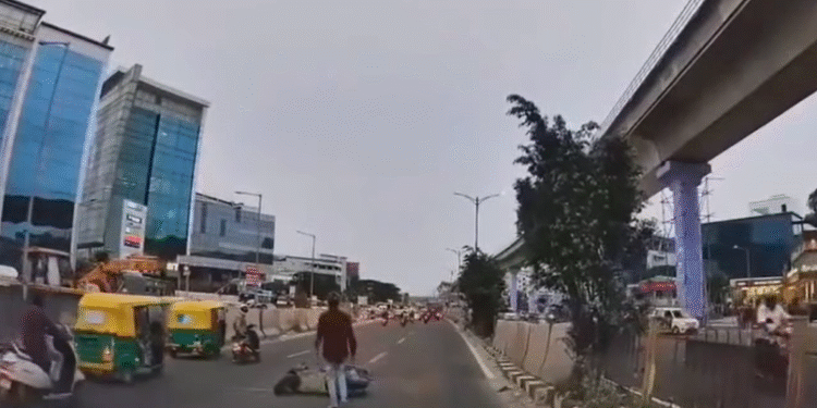 ಬೆಂಗಳೂರು: ರಸ್ತೆಯಲ್ಲಿದ್ದ ಗುಂಡಿ ಗಮನಿಸದೆ ಬಿದ್ದ ಸವಾರ ಸ್ವಲ್ಪದರಲ್ಲೇ ಪ್ರಾಣಾಪಾಯದಿಂದ ಪಾರಾಗಿದ್ದಾರೆ.