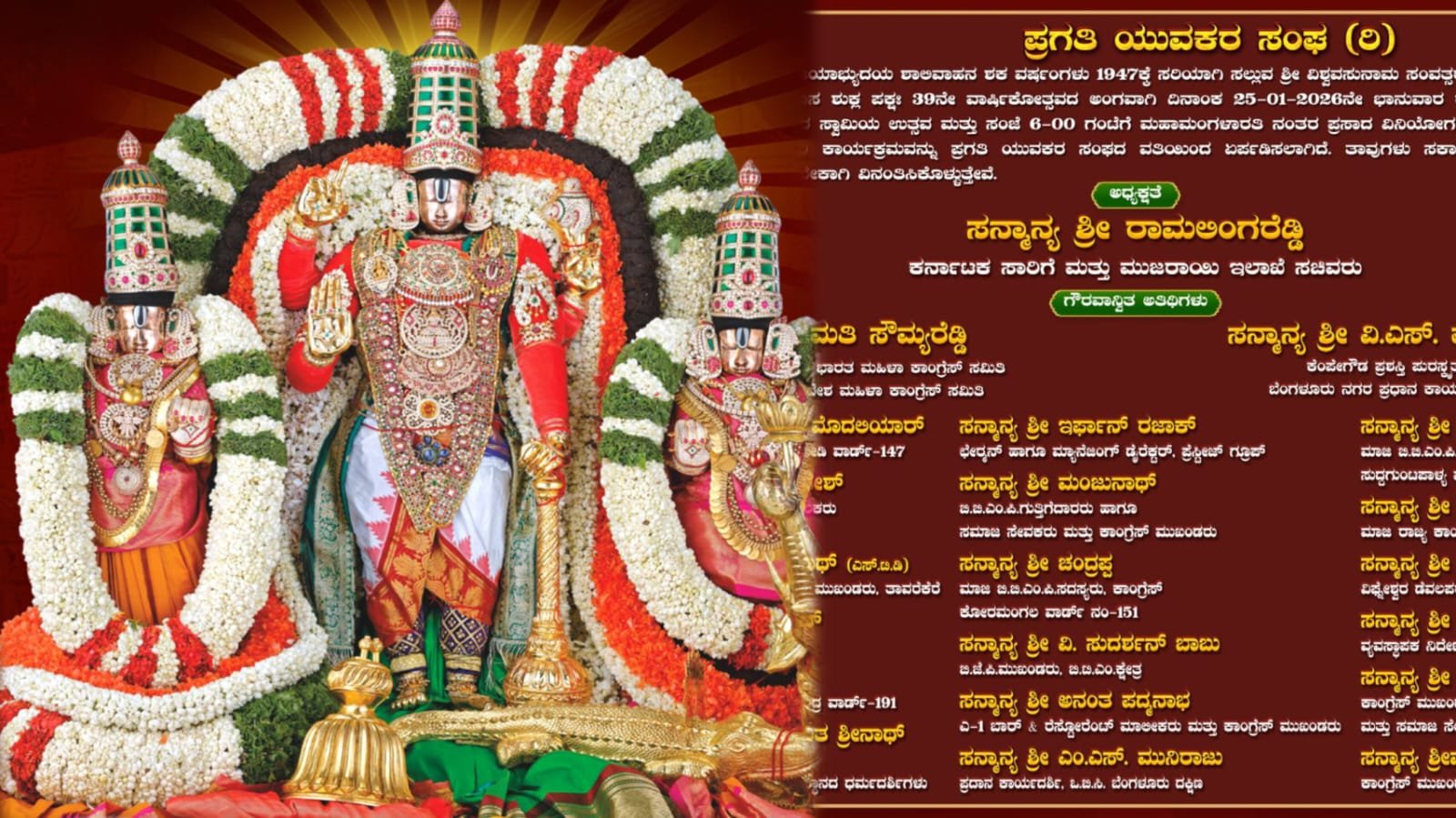 ಪ್ರಗತಿ ಯುವಕ ಸಂಘದ ವತಿಯಿಂದ ಜ.25ಕ್ಕೆ ವೆಂಕಟೇಶ್ವರ ಸ್ವಾಮಿಯ ಅದ್ಧೂರಿ ಉತ್ಸವ
