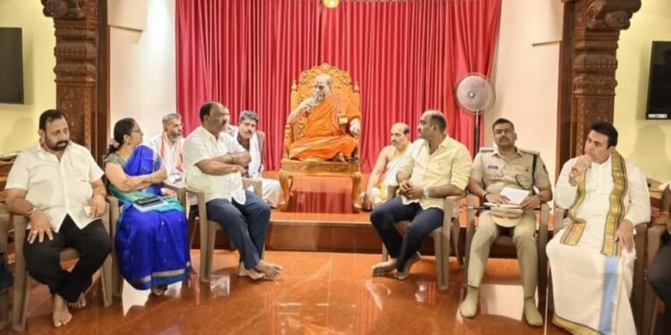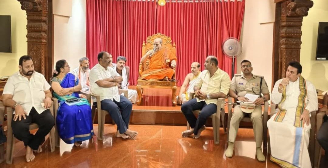 ಉಡುಪಿ : ನವೆಂಬರ್ 28ಕ್ಕೆ ಉಡುಪಿ ಶ್ರೀಕೃಷ್ಣ ಮಠದಲ್ಲಿ ನಡೆಯುವ ಐತಿಹಾಸಿಕ ಲಕ್ಷ ಕಂಠ ಗೀತಾ ಆಯೋಜನೆ ಹಾಗೂ ಪ್ರಧಾನ ಮಂತ್ರಿ ಮೋದಿ ಭೇಟಿಯ ಪೂರ್ವ ತಯಾರಿಗಳ ಬಗ್ಗೆ ಉಡುಪಿ ಶ್ರೀಕೃಷ್ಣ ಮಠದ ಗೀತಾ ಮಂದಿರದಲ್ಲಿ ಪರ್ಯಾಯ ಶ್ರೀಪಾದರಾದ ಶ್ರೀ ಸುಗುಣೇಂದ್ರತೀರ್ಥ ಶ್ರೀಗಳ ಅಧ್ಯಕ್ಷತೆಯಲ್ಲಿ ಇಂದು ಪೂರ್ವಭಾವಿ ಸಭೆ ನಡೆಯಿತು.
