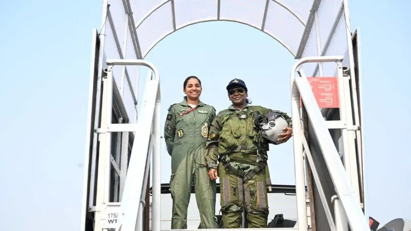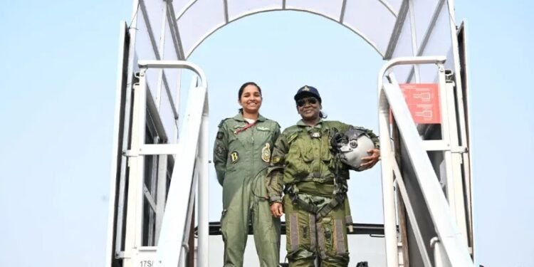 ಹಾರಾಟ ನಡೆಸಿದ ಬಳಿಕ ಶಿವಾಂಗಿ ಸಿಂಗ್ ಅವರ ಜೊತೆ ದ್ರೌಪದಿ ಮುರ್ಮು ಫೋಟೋ ಕ್ಲಿಕ್ಕಿಸಿದರು