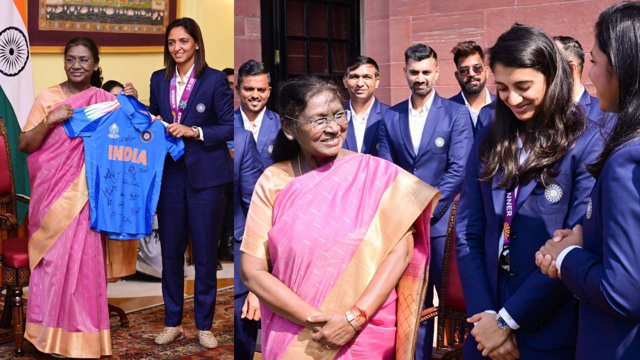 ಇನ್ನು ಈ ವೇಳೆ ರಾಷ್ಟ್ರಪತಿ ಅವರ ಜತೆಗೆ ಎಲ್ಲ 16 ಆಟಗಾರ್ತಿಯರು ಮತ್ತು ಮುಖ್ಯ ಕೋಚ್​ ಅಮೋಲ್​ ಮುಜುಮ್ದಾರ್​, ಬಿಸಿಸಿಐ ಅಧ್ಯಕ್ಷ ಮಿಥುನ್​ ಮನ್ಹಾಸ್​ ಟ್ರೋಫಿಯೊಂದಿಗೆ ಪೋಸ್​ ನೀಡಿದರು. ಮುರ್ಮು ತಂಡದ ಐತಿಹಾಸಿಕ ಸಾಧನೆಯನ್ನು ಶ್ಲಾಘಿಸಿದರು ಮತ್ತು ಯುವಜನರನ್ನು ಪ್ರೇರೇಪಿಸುವಲ್ಲಿ ಅವರ ಪಾತ್ರವನ್ನು ಎತ್ತಿ ತೋರಿಸಿದರು. ಬುಧವಾರ ಪ್ರಧಾನಿ ನರೇಂದ್ರ ಮೊದಿ ಅವರನ್ನು ಲೋಕಕಲ್ಯಾಣ ಮಾರ್ಗದ ಅಧಿಕೃತ ನಿವಾಸದಲ್ಲಿ ಮಹಿಳಾ ತಂಡ ಭೇಟಿ ಮಾಡಿತ್ತು.