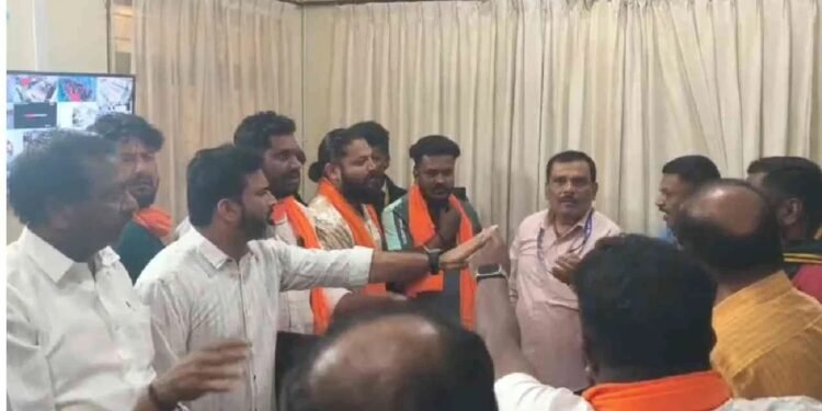 ನಗರದ MES ಪಿಯು ಕಾಲೇಜಿನಲ್ಲಿ ಅಯ್ಯಪ್ಪ ಮಾಲೆ ಧರಿಸಿದ ಮೂವರು ಪ್ರಥಮ ಪಿಯುಸಿ ವಿದ್ಯಾರ್ಥಿಗಳನ್ನು ಪ್ರಿನ್ಸಿಪಾಲ್ ಹೊರಗೆ ಹಾಕಿದ್ದು, ಮಾಲೆ ತೆಗೆದು ಒಳಗೆ ಬನ್ನಿ ಎಂದು ತಾಕೀತು ಮಾಡಿದ್ದಾರೆ ಎಂಬ ಆರೋಪ ಕೇಳಿಬಂದಿದೆ. ಈ ವಿಚಾರ ತಿಳಿಯುತ್ತಿದ್ದಂತೆಯೇ ಹಿಂದೂ ಸಂಘಟನೆ, ಬಿಜೆಪಿ ಕಾರ್ಯಕರ್ತರು ಕಾಲೇಜು ಬಳಿ ಬಂದು ವಾಗ್ವಾದ ನಡೆಸಿದ್ದಾರೆ.