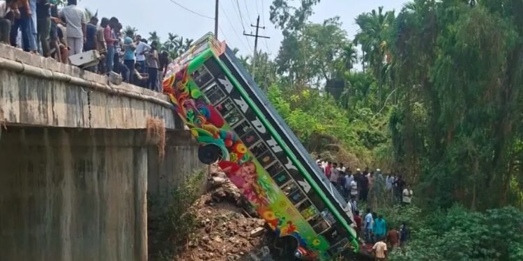 ಶಿವಮೊಗ್ಗ : ರಾಜ್ಯದಲ್ಲಿ ಮತ್ತೊಂದು ಬಸ್‌ ದುರಂತ ಸಂಭವಿಸಿದೆ. ಖಾಸಗಿ ಬಸ್ಸೊಂದು ಕಿರುಸೇತುವೆಯಿಂದ ಹಳ್ಳಕ್ಕೆ ಉರುಳಿದ ಪರಿಣಾಮ 30ಕ್ಕೂ ಹೆಚ್ಚು ಜನರಿಗೆ ಗಂಭೀರ ಗಾಯವಾಗಿರುವ ಘಟನೆ ಶಿವಮೊಗ್ಗ ಜಿಲ್ಲೆಯ ಭದ್ರಾವತಿ ತಾಲೂಕಿನ ಕಾಗೆಹಳ್ಳದಲ್ಲಿ ನಡೆದಿದೆ.