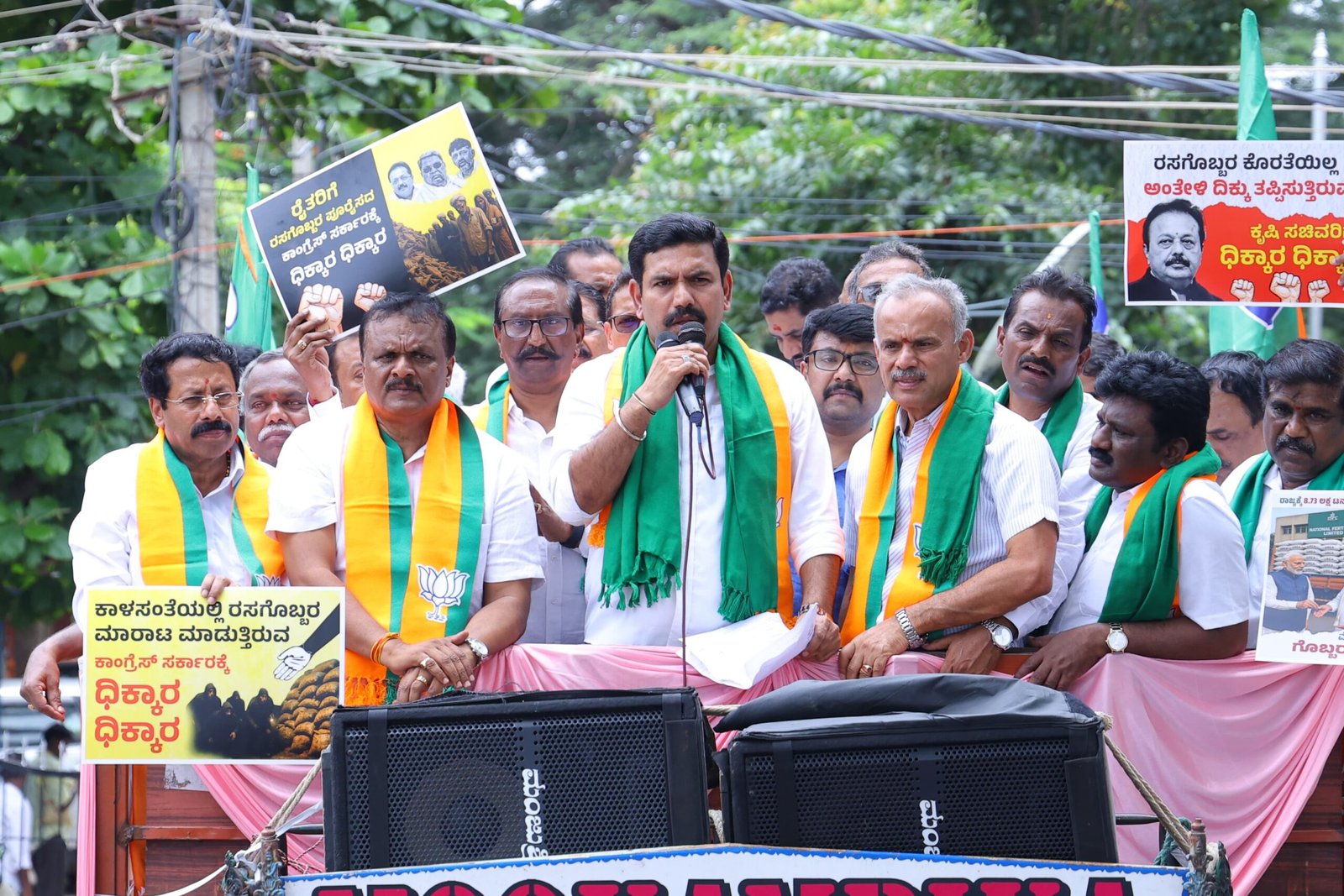 ತುಮಕೂರು: ರೈತರಿಗೆ ರಸಗೊಬ್ಬರ ಪೂರೈಕೆಯಲ್ಲಿ ರಾಜ್ಯ ಕಾಂಗ್ರೆಸ್ ಸರ್ಕಾರದ ವೈಫಲ್ಯದ ವಿರುದ್ಧ ಬಿಜೆಪಿ ವತಿಯಿಂದ ಬೃಹತ್ ಪ್ರತಿಭಟನೆ ನಡೆಯಿತು.
