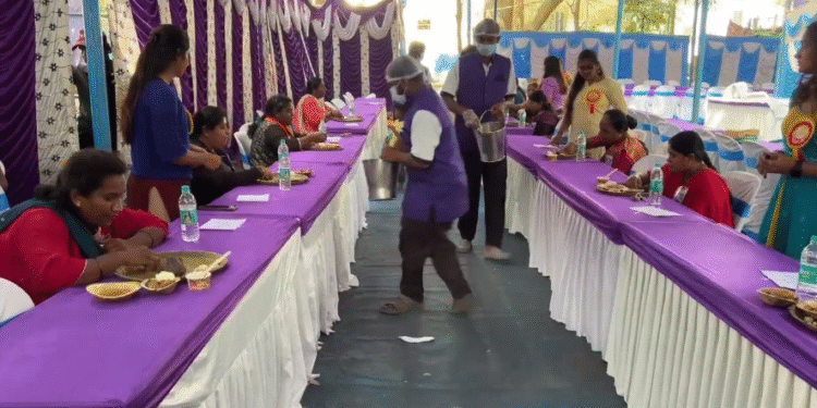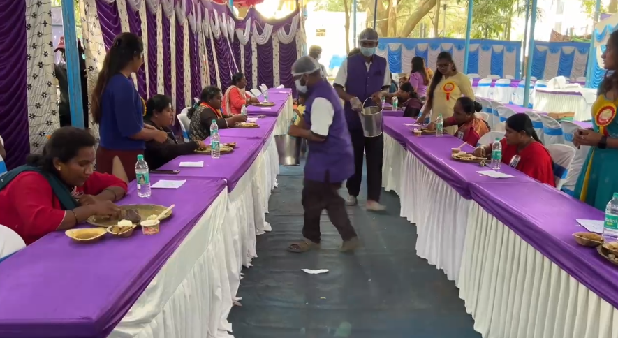 ಬೆಂಗಳೂರಿನ ಹೆಚ್.ಎಸ್.ಆರ್ ಲೇಔಟ್ನಲ್ಲಿ ನಾಡಗೀತೆ ಶತಮಾನೋತ್ಸವ ಮತ್ತು ವಕೀಲರ ಸಮ್ಮಿಲನ ಕಾರ್ಯಕ್ರಮ ಪ್ರಯುಕ್ತ ವಿಕೇಂಡ್ ನಲ್ಲಿ ನಾಟಿ ಕೋಳಿ ಸಾಂಬಾರ್ ಜೊತೆ ಮುದ್ದೆ ತಿಂದು ಎಂಜಾಯ್ ಮಾಡಿದ್ದಾರೆ. ಮಂಡ್ಯ, ಹಾಸನ, ಕನಕಪುರ, ಚಿತ್ರದುರ್ಗ,ಮೈಸೂರು, ದೊಡ್ಡಬಳ್ಳಾಪುರ, ಚೆನ್ನಪಟ್ಟಣ, ಆನೇಕಲ್ ಸೇರಿದಂತೆ ನಾನಾ ಭಾಗಗಳಿಂದ ಸ್ಪರ್ಧಿಗಳು ಆಗಮಿಸಿದ್ದಾರೆ. ಸ್ಪರ್ಧೆಯಲ್ಲಿ 125 ಮಂದಿ ಪುರುಷರು, 25 ಮಂದಿ ಮಹಿಳೆಯರು ಸೇರಿ ಒಟ್ಟು 150 ಸ್ಪರ್ಧಿಗಳು ಭಾಗಿಯಾಗಿದ್ದಾರೆ.