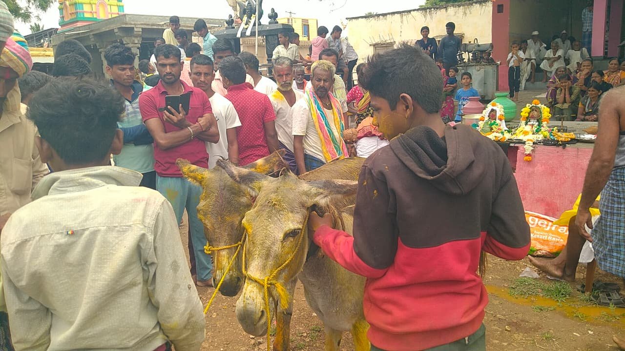 ಮಧುಮಕ್ಕಳಂತೆ ಕತ್ತೆಗಳಿಗೆ ಬಾಸಿಂಗ, ಕಂಕಣ ಕಟ್ಟಿ ಶೃಂಗಾರ ಮಾಡಿ, ಗ್ರಾಮದ ಮೈಲಾರ ಲಿಂಗ ದೇವಾಸ್ಥಾನದಲ್ಲಿ ಮದುವೆ ಮಾಡಲಾಗಿದೆ.