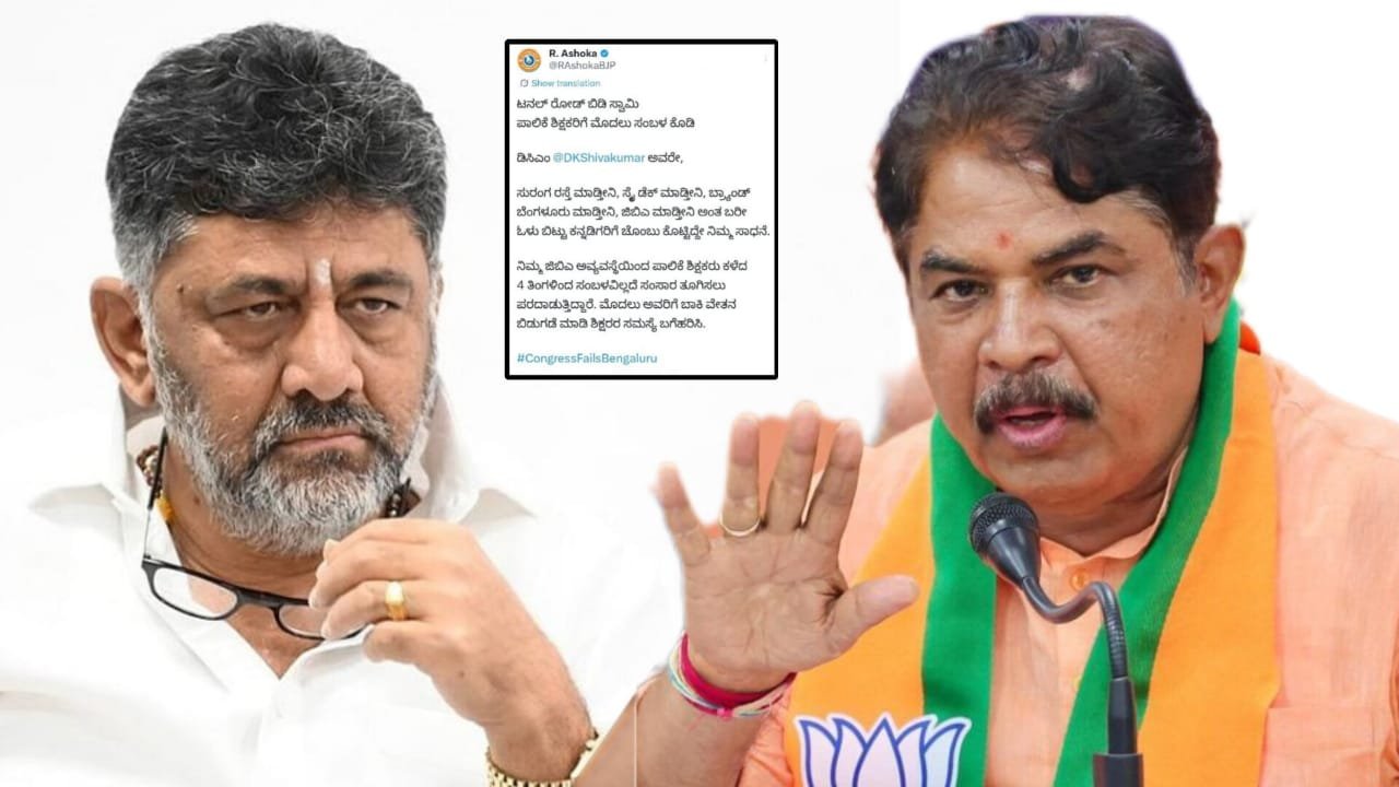 ಪಾಲಿಕೆ ಶಾಲೆಗಳಲ್ಲಿ ಮಕ್ಕಳಿಗೆ ಗುಣಮಟ್ಟದ ಶಿಕ್ಷಣ ಒದಗಿಸಲು ಅಗತ್ಯ ಶಿಕ್ಷಕರ ವ್ಯವಸ್ಥೆ ಮಾಡುತ್ತೇವೆಂದೂ, ಅತಿಥಿ ಶಿಕ್ಷಕ/ಉಪನ್ಯಾಸಕರಿಗೆ ನಿಗದಿತ ವೇತನ ನೀಡುತ್ತೇವೆಂದೂ ಡಿಸಿಎಂ ಶಿವಕುಮಾರ್ ಭರವಸೆ ನೀಡಿದ್ದರು. ಈ ಭರವಸೆಗಳು ಕಾರ್ಯರೂಪಕ್ಕೆ ಬರದ ಕಾರಣ ಟ್ವೀಟ್ ಮಾಡಿರುವ ಆರ್ ಅಶೋಕ್, ‘ಟನಲ್ ರೋಡ್ ಬಿಡಿ ಸ್ವಾಮಿ, ಪಾಲಿಕೆ ಶಿಕ್ಷಕರಿಗೆ ಮೊದಲು ಸಂಬಳ ಕೊಡಿ. ಸುರಂಗ ರಸ್ತೆ ಮಾಡುತ್ತೇನೆ, ಸ್ಕೈ ಡೆಕ್ ಮಾಡುತ್ತೇನೆ, ಬ್ರ್ಯಾಂಡ್ ಬೆಂಗಳೂರು ಮಾಡುತ್ತೇನೆ, ಜಿಬಿಎ ಮಾಡುತ್ತೇನೆ ಎಂದು ಬರೀ ಓಳು ಬಿಟ್ಟು ಕನ್ನಡಿಗರಿಗೆ ಚೊಂಬು ಕೊಟ್ಟಿದ್ದೇ ನಿಮ್ಮ ಸಾಧನೆ.