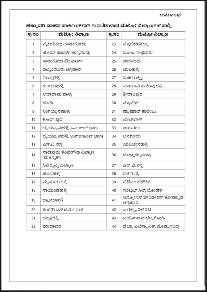 - ನಾಡಪ್ರಭು ಕೆಂಪೇಗೌಡ ನಿಲ್ಯಾಣ- ಮಜೆಸ್ಟಿಕ್ ನಿಂದ ನಾಲ್ಕು ದಿಕ್ಕುಗಳಿಗೆ ಮಧ್ಯರಾತ್ರಿ 01:30ಕ್ಕೆ ಕೊನೆಯ ರೈಲು ಹೊರಡಲಿದೆ