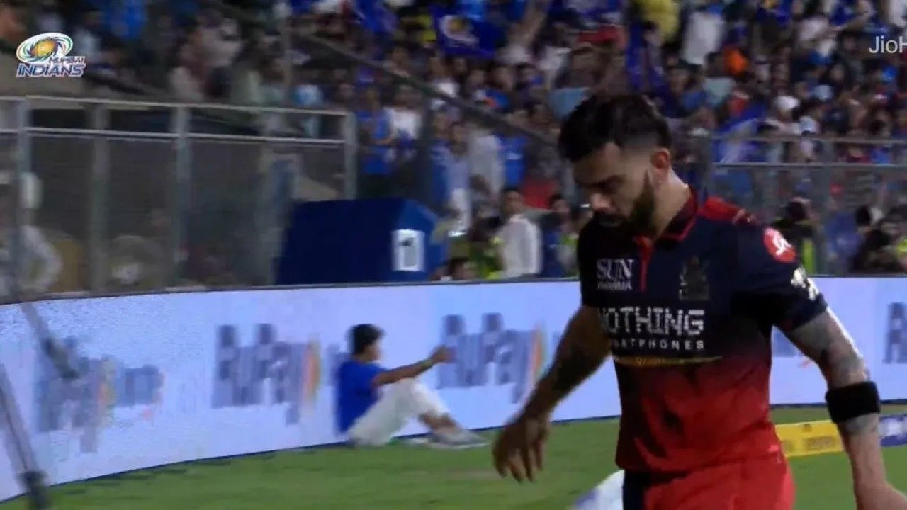 ವಾಂಖೆಡೆ ಕ್ರೀಡಾಂಗಣದಲ್ಲಿ ನಡೆದ ಈ ಪಂದ್ಯದಲ್ಲಿ ವಿರಾಟ್ ಕೊಹ್ಲಿ ಅರ್ಧಶತಕ ಬಾರಿಸಿದರೂ, ಅವರ ಸ್ಟ್ರೈಕ್ ರೇಟ್ ನಿರೀಕ್ಷಿತ ಮಟ್ಟದಲ್ಲಿರಲಿಲ್ಲ. ಇದು ಟೀಕೆಗೂ ಗುರಿಯಾಗಿದೆ. ಕ್ರೀಸ್‌ನಲ್ಲಿ ಪರದಾಡಿದಂತೆ ಕಂಡ ಕೊಹ್ಲಿ, ವಿಕೆಟ್ ಒಪ್ಪಿಸಿದ ಬಳಿಕ ತೀವ್ರ ಹತಾಶರಾಗಿ ಪೆವಿಲಿಯನ್‌ಗೆ ಮರಳುವಾಗ ತಮ್ಮ ಗ್ಲೌಸ್ ಹಾಗೂ ಹೆಲ್ಮೆಟ್ ಅನ್ನು ಕೋಪದಿಂದ ಬಿಸಾಕಿದ ವಿಡಿಯೊ ಇದೀಗ ಸಾಮಾಜಿಕ ಜಾಲತಾಣಗಳಲ್ಲಿ ಭಾರಿ ವೈರಲ್ ಆಗುತ್ತಿದೆ.