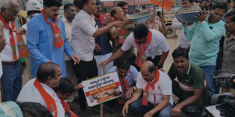ಈಗಾಗಲೇ ರಸ್ತೆ ಗುಂಡಿ ಮುಂಚುವಂತೆ ರಾಜ್ಯಾದ್ಯಂತ ಅಭಿಯಾನ ಆರಂಭಿಸಿದ್ದು, ಹಲವಡೆ ಬಿಜೆಪಿ ಕಾರ್ಯಕರ್ತರು ಕಾಂಗ್ರೆಸ್ ಸರ್ಕಾರದ ವಿರುದ್ಧ ಸಮರ ಸಾರಿದ್ದಾರೆ. ಬೆಂಗಳೂರಿನಲ್ಲಿ ಬಿಜೆಪಿ ನಾಯಕರು ರಸ್ತೆ ತಡೆದು ಗುಂಡಿ ಮುಚ್ಚುವ ಹೋರಾಟಕ್ಕೆ ಮುಂದಾಗಿದ್ದಾರೆ. ಯಾದಗಿರಿಯಲ್ಲೂ ಬಿಜೆಪಿಯಿಂದ ರಸ್ತೆ ತಡೆದು ಪ್ರತಿಭಟನೆ ನಡೆಸಿದ್ದಾರೆ. ಯಾದಗಿರಿ ಮತಕ್ಷೇತ್ರದ ದೋರನಹಳ್ಳಿ ಗ್ರಾಮದ ಬಳಿ ಬಿಜೆಪಿ ಮುಖಂಡ ಮಹೇಶ್ ರೆಡ್ಡಿ ಮುದ್ನಾಳ್ ನೇತೃತ್ವದಲ್ಲಿ ರಸ್ತೆ ತಡೆದು ರಸ್ತೆಯಲ್ಲೇ ಧರಣಿ ಕುಳಿತ ಪ್ರತಿಭಟನಾಕಾರರು ರಸ್ತೆ ಗುಂಡಿಯಲ್ಲಿ ಸಿಎಂ ಸಿದ್ದರಾಮಯ್ಯ, ಡಿಸಿಎಂ ಭಾವಚಿತ್ರವಿಟ್ಟ ಬ್ಯಾನರ್ ಹಿಡಿದು, ಸರ್ಕಾರದ ವಿರುದ್ಧ ಘೋಷಣೆ ಕೂಗಿ ಆಕ್ರೋಶ ಹೊರಹಾಕಿದರು.