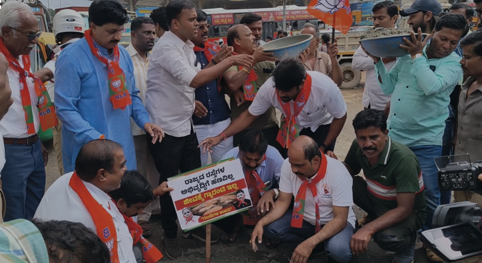ಬೆಂಗಳೂರು: ರಾಜ್ಯದಲ್ಲಿ ರಸ್ತೆ ಗುಂಡಿ ವಿಚಾರ ಭಾರೀ ಸದ್ದು ಮಾಡುತ್ತಿದೆ. ಉದ್ಯಮಿಗಳು ಮತ್ತು ನಾಗರೀಕರು ರಸ್ತೆ ಗುಂಡಿ ವಿಚಾರಕ್ಕೆ ಬೇಸರ ವ್ಯಕ್ತಪಡಿಸುತ್ತಿದ್ದಾರೆ. ಇದನ್ನೇ ಬಂಡವಾಳವಾಗಿಟ್ಟುಕೊಂಡು ಬಿಜೆಪಿ ನಾಯಕರು ಕಾಂಗ್ರೆಸ್ ಸರ್ಕಾರದ ವಿರುದ್ಧ ಕಿಡಿಕಾರುತ್ತಿದ್ದಾರೆ. ರಾಜ್ಯಾದ್ಯಂತ ಇಂದು (ಬುಧವಾರ) ಬಿಜೆಪಿ ನಾಯಕರು ಪ್ರತಿಭಟನೆ ಅಭಿಯಾನ ಆರಂಭಿಸಿದ್ದಾರೆ. ಸ್ವತಃ ಬಿಜೆಪಿ ನಾಯಕರೇ ಗುಂಡಿಯನ್ನು ಮುಚ್ಚುವ ಕಾರ್ಯಕ್ಕೆ ಮುಂದಾಗಿದ್ದು, ಸರ್ಕಾರಕ್ಕೆ ಇದೊಂದು ರೀತಿ ಮುಜುಗರವಾಗುವಂತಿದೆ.