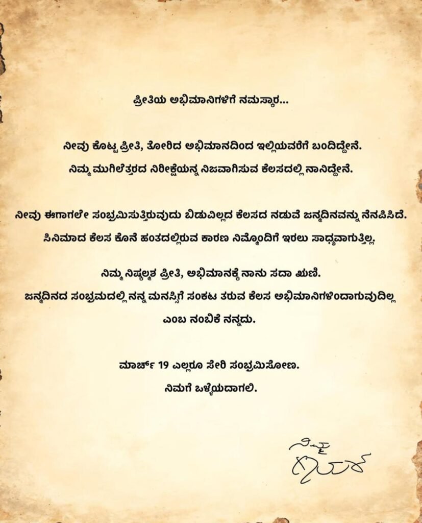 ಶೀಘ್ರದಲ್ಲೇ ಇನ್ನೂ ದೊಡ್ಡ ರೀತಿಯಲ್ಲಿ ನಿಮ್ಮೆಲ್ಲರನ್ನು ಭೇಟಿಯಾಗುತ್ತೇನೆ, ಜೊತೆಗೆ ನೀವು ನನಗೆ ಕಳಿಸುವ ಪ್ರತಿ ಶುಭಾಶಯ ಹಾಗೂ ಪ್ರತಿ ಪ್ರೀತಿಯ ತುಣುಕನ್ನೂ ನಾನು ಸ್ವೀಕರಿಸುತ್ತೇನೆ ಎಂದು ಅಭಿಮಾನಿಗಳಿಗೆ ಯಶ್ ಸಂದೇಶ ರವಾನಿಸಿದ್ದಾರೆ.