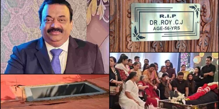 ರಾಯ್ ಮೃತದೇಹವನ್ನು ಕಾಫಿನ್ ಬಾಕ್ಸ್ನಲ್ಲಿ ಇರಿಸಿ ಅಂತ್ಯ ಸಂಸ್ಕಾರ ನೆರವೇರಿಸಲಾಗುತ್ತಿದೆ. ಚರ್ಚ್ನಲ್ಲಿ ಪ್ರಾರ್ಥನಾ ವಿಧಿ ಮುಗಿದ ಬಳಿಕ, ಅನಂತ ಅಂತ್ಯ ಸಂಸ್ಕಾರ ಕಾರ್ಯಕ್ರಮ ನಡೆಯಲಿದೆ.