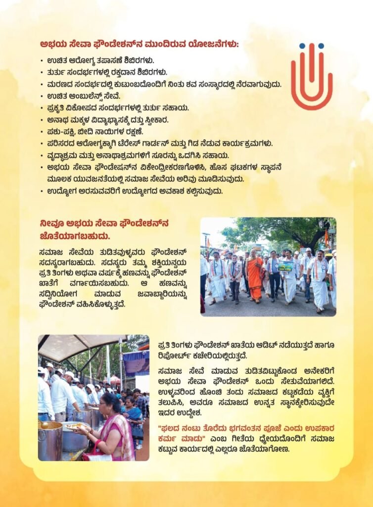 ಬೆಂಗಳೂರಿನ ಪ್ರೆಸ್ ಕ್ಲಬ್‌ನಲ್ಲಿ ಈ ಬಗ್ಗೆ ಮಾತನಾಡಿದ ಅವರು, ಬಡವರ, ನೊಂದವರ ಸೇವೆ ಮಾಡಲು ಮತ್ತು ಸಂಸ್ಕೃತಿ ಉಳಿಸಲು ಅಭಯ ಸೇವಾ ಫೌಂಡೇಶನ್ ಸ್ಥಾಪನೆಯಾಗಿದೆ. ಕಳೆದ ವರ್ಷ ಸೇವಾ ಸಂಕಲ್ಪ ಕಾರ್ಯಕ್ರಮ ಸಾವಿರಾರು ಜನರಿಗೆ ಉಪಯೋಗವಾಗಿದೆ. ಈ ಭಾರಿ ರಾಜಾಜಿಗರದ ಶ್ರೀ ರಾಮಮಂದಿರ ಆಟದ ಮೈದಾನದಲ್ಲಿ ಡಿಸೆಂಬರ್ 19, 20, 21ರ ಮೂರು ದಿನಗಳ ಕಾಲ ಸೇವಾ ಸಂಕಲ್ಪ ಕಾರ್ಯಕ್ರಮ ಹಮ್ಮಿಕೊಳ್ಳಲಾಗಿದೆ.