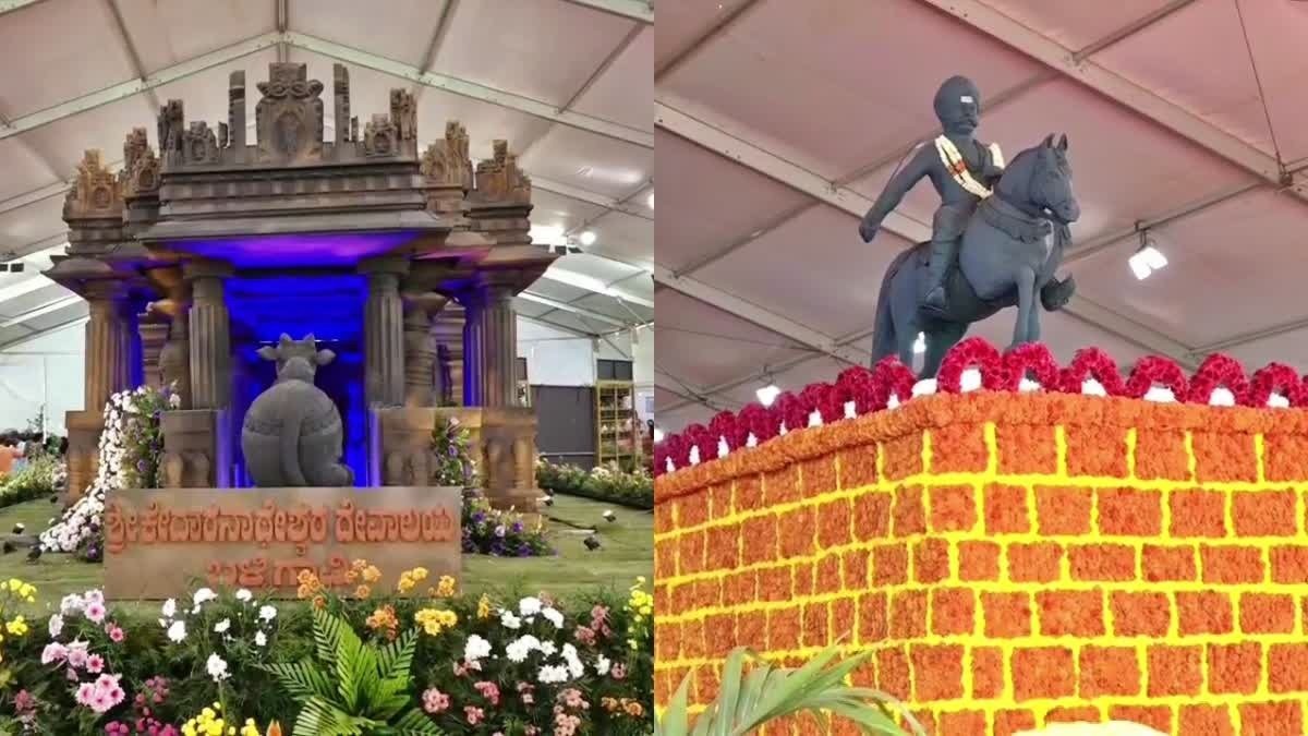 ಈ ಪ್ರದರ್ಶನಕ್ಕೆ ಹೋಗುತ್ತಿದ್ದಂತೆ ‘ನಮ್ಮ ಶಿವಮೊಗ್ಗ’ ಘೋಷವಾಕ್ಯವಿದೆ. ಬಳಿಕ ಪುಷ್ಪದಲ್ಲಿ ನಿರ್ಮಾಣವಾದ ಕೆಳದಿಯ ಶಿವಪ್ಪ ನಾಯಕನ ಪ್ರತಿಮೆ, ಶಿಕಾರಿಪುರ ತಾಲೂಕಿನ ಬಳ್ಳಿಗಾವಿಯ ಕೇದಾರನಾಥ ದೇವಾಲಯ ಹಾಗೂ ಜಗತ್ ಪ್ರಸಿದ್ಧ ಜೋಗ ಜಲಪಾತ ಜನಾಕರ್ಷಕವಾಗಿದೆ. ಇದರ ಸುತ್ತ ವಿವಿಧ ಕರಕುಶಲ ವಸ್ತುಗಳ ಪ್ರದರ್ಶನ ಹಾಗೂ ಮಾರಾಟದ ಮಳಿಗೆ ಸೂಜಿಗಲ್ಲಿನಂತೆ ಪ್ರೇಕ್ಷಕರನ್ನು ಸೆಳೆಯುತ್ತವೆ.