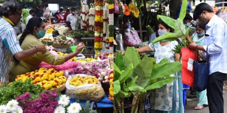 ಹೂವು, ಹಣ್ಣು ಹಾಗೂ ಪೂಜಾ ಸಾಮಗ್ರಿಗಳಿಗೆ ಬೇಡಿಕೆ ಹೆಚ್ಚಾಗಿರುವ ಹಿನ್ನೆಲೆಯಲ್ಲಿ ಮಾರುಕಟ್ಟೆಯಲ್ಲಿ ದರ ಕೊಂಚ ಏರಿಕೆ ಕಂಡಿದೆ. ವಿಶೇಷವಾಗಿ ಮಲ್ಲಿಗೆ ಹೂವು ಸಾಮಾನ್ಯ ದಿನಗಳಿಗಿಂತ ದುಬಾರಿಯಾಗಿದ್ದು, ಕೆಜಿಗೆ 1,000 ರೂಪಾಯಿ ತನಕ ಮಾರಾಟವಾಗುತ್ತಿದೆ. ಹಬ್ಬದ ಪ್ರಮುಖ ಆಕರ್ಷಣೆಯಾದ ಬೇವು ಮತ್ತು ಮಾವಿನ ಸೊಪ್ಪಿಗೂ ಭಾರಿ ಬೇಡಿಕೆ ಸೃಷ್ಟಿಯಾಗಿದೆ.
